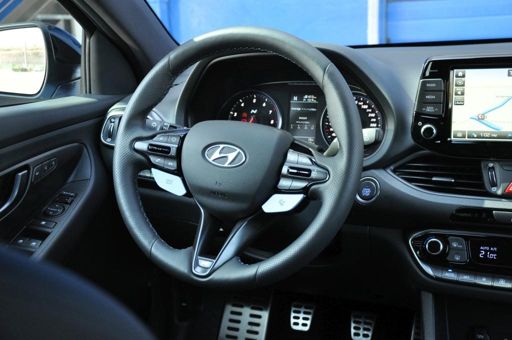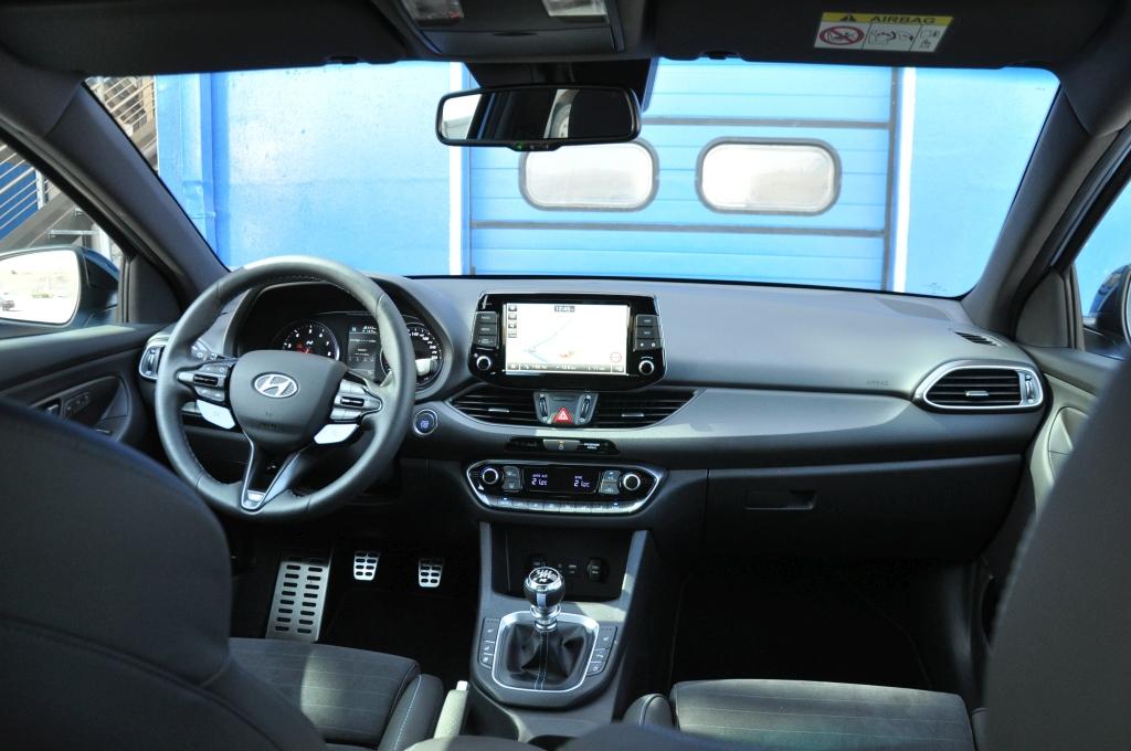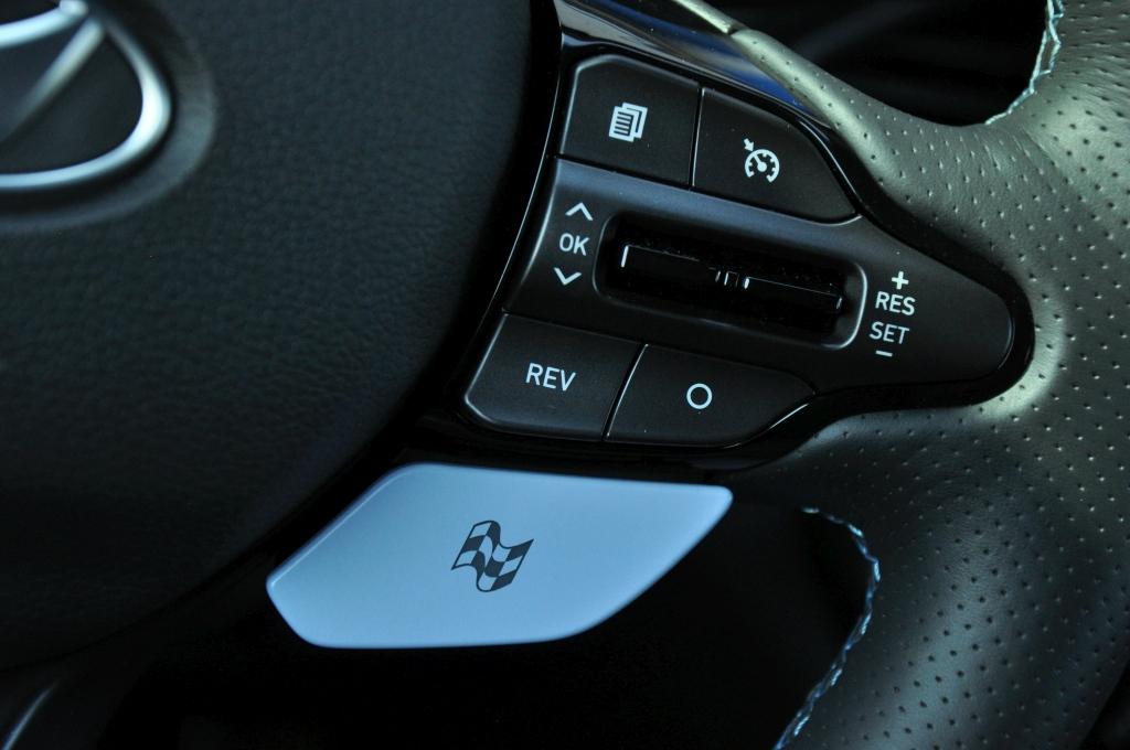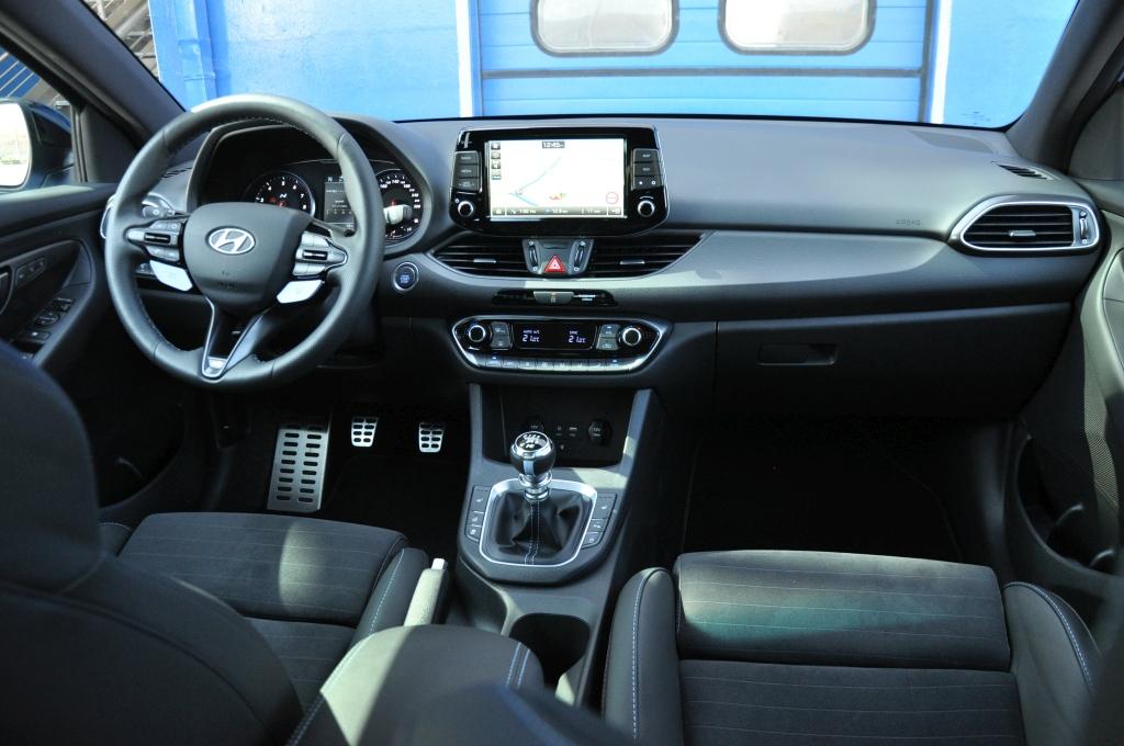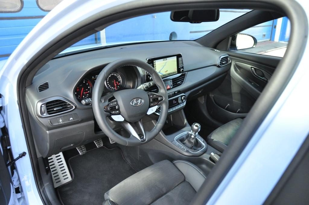 Samochód już od pierwszej chwili daje się poznać jako sztywny i zwarty. Dźwignia zmiany biegów pracuje twardo, a mechanizm zestrojono tak, że za każdym razem doskonale wiemy, że wybraliśmy bieg odpowiednio. Układ kierowniczy jest fantastyczny i stawia opór, jakiego spodziewamy się po aucie tej klasy. Na kierownicy umieszczono przełączniki trybów jazdy, mamy do wyboru Eko, Normal oraz bardziej naturalne Sport, N i N Custom. Sterują one reakcją silnika, międzygazem, systemem wydechowym, sterowaniem szperą, kontrolą trakcji, układem kierowniczym i pracą amortyzatorów. Każdy podzespół oferuje od dwóch do czterech trybów pracy, co pozwala na zestrojenie sobie samochodu pod siebie w trybie N Custom. Rezonator pod deską rozdzielczą wzmaga odgłosy wydechu w trybie Sport, dodając dźwięk detonacji niespalonego paliwa w N, choć wszystko w sumie jest odrobinę za ciche.