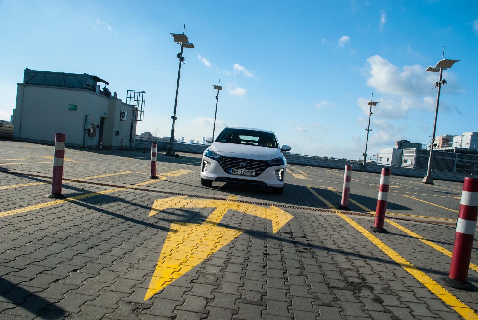 Hyundai Ioniq zaskakuje pod względem prowadzenia. Wspomaganie działa bardzo lekko, przez co manewry parkingowe można wykonywać dosłownie jednym palcem. Niestety przy większych prędkościach utrudnia to wyczucie samochodu, ponieważ układ kierowniczy utwardza się tylko w małym stopniu. Na pochwałę zasługuje jednak zawieszenie, które doskonale tłumi nierówności. Mimo niemałych felg aluminiowych i niskiego profilu opony (testowy egzemplarz odziany był w ogumienie w rozmiarze 225/45/17), jazda po nierównych drogach nie daje kierowcy i pasażerom w kość. Zawieszenie jest miękko zestrojone, ale pracuje cicho i skutecznie. Nieco gorzej jest przy dynamicznym pokonywaniu zakrętów – wówczas hybrydowy Hyundai ma ochotę "poturlać się" po drodze.