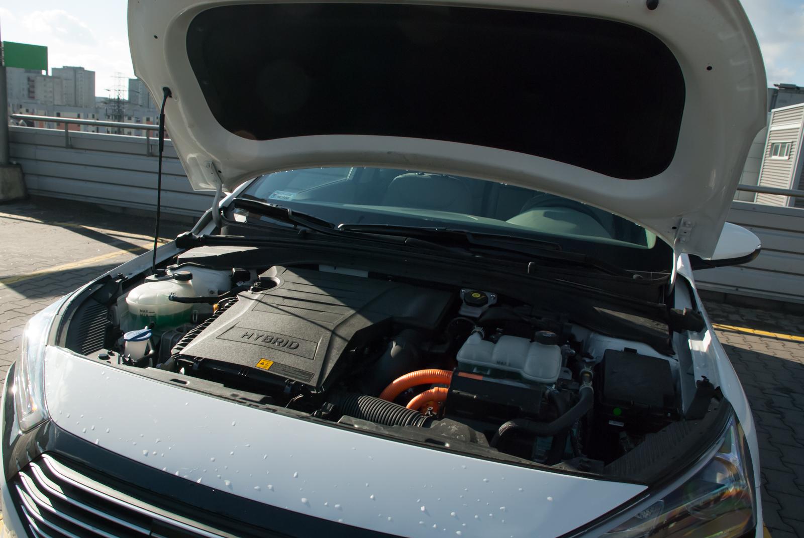 Pod maską hybrydowej odmiany Hyundai'a Ioniq znalazł się silnik benzynowy 1.6 GDi o mocy 105 koni mechanicznych. Współpracuje on z elektrycznym motorem, zdolnym wykrzesać z siebie dokładnie 43 i pół konia mechanicznego (szczególnie bawi to „pół”). Taki duet łącznie może pochwalić się mocą 141 KM i maksymalnym momentem obrotowym, wynoszącym 235 Nm. Jednak na pierwszym biegu Ioniq dysponuje nieco większym momentem obrotowym, a dokładnie 265 Nm. Co ciekawe, napęd nie jest przekazywany na koła poprzez znienawidzoną przekładnię bezstopniową, jak to bywa w większości aut hybrydowych. Koreańscy inżynierowie przewidzieli niechęć konsumentów do jazdy autem, zachowującym się jak skuter. Dlatego w Ioniqu mamy do dyspozycji standardową dwusprzęgłową skrzynię biegów o sześciu przełożeniach. Dzięki temu samochód rozpędza się żwawo, bez nieznośnego jazgotu, jakie zwykły wydawać z siebie przekładnie typu CVT.