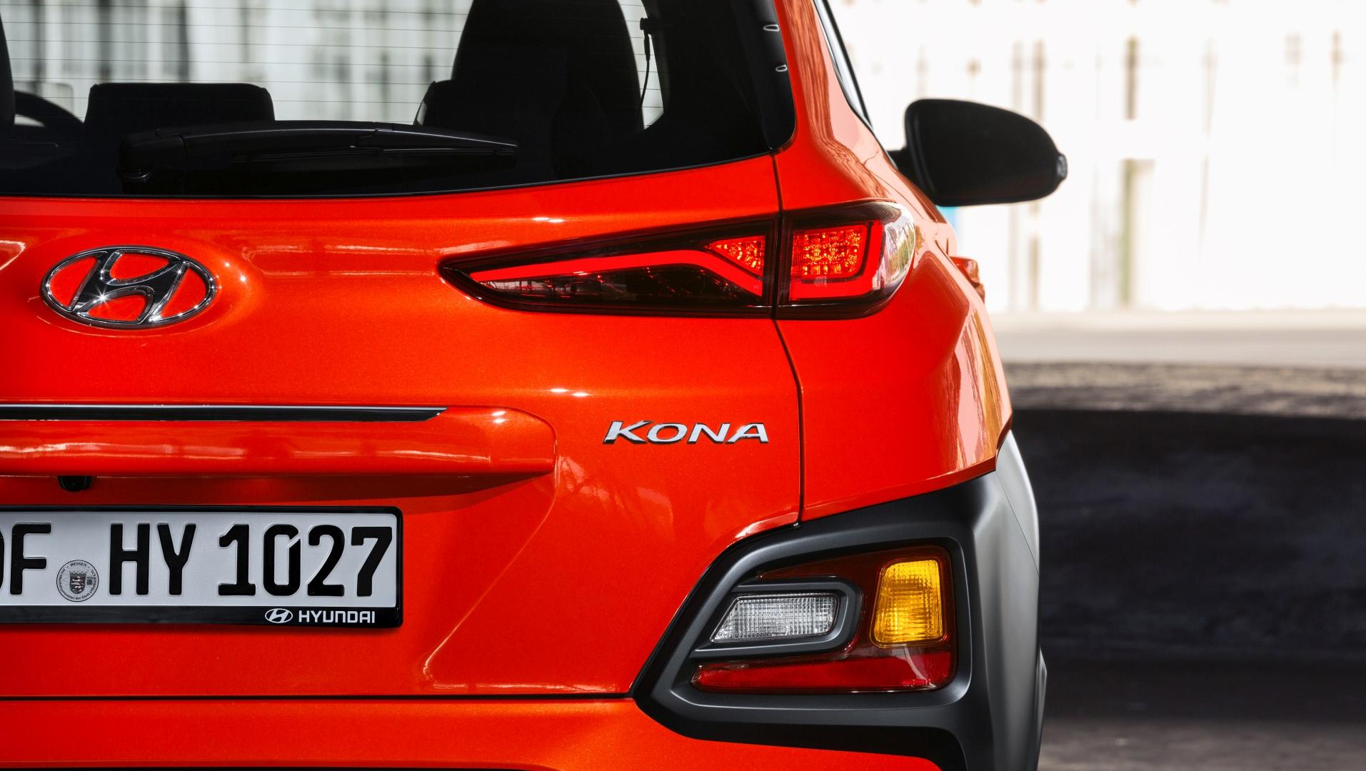 Wygląd zewnętrzny gra w tym samochodzie ewidentnie pierwsze skrzypce i dokładnie potwierdza teoretyczne założenia. Koreańczycy wiedzą, że zwłaszcza w Europie, coraz częściej klienci „kupują samochody oczami”. Nawet najlepsza technologia i osiągi bez atrakcyjnego „opakowania” nie mają szans na zdobycie rynku. Kona jest awangardowa i nowatorska – czerpie oczywiście z kilku charakterystycznych motywów dla swojej marki, ale pierwsze wrażenie powoduje, że sylwetka auta zapada głęboko w pamięć. Tak jak w przypadku znanych doskonale wszystkim, ekstrawaganckich crossoverów, takich jak Nissan Juke i Citroen C4 Cactus, pierwsze wrażenie po zobaczeniu Hyundaia Kona od razu dzieli obserwatorów na zwolenników i przeciwników – trudno w tej kwestii o kompromis. Przede wszystkim uwagę zwraca front samochodu – wydzielone światła do jazdy dziennej LED tworzą „brwi” głównych reflektorów, również wykonanych w technologii LED. Nie jest to nowe rozwiązanie stylistyczne, ale wciąż jest zjawiskowe i wygląda awangardowo, zwłaszcza na tle innych model Hyundaia. Sześciokątny grill ze sporej wielkości znaczkiem, wraz ze światłami i obszerną powierzchnią nielakierowanego, czarnego plastiku na zderzaku, powodują, że Kona wygląda bardzo sportowo i agresywnie. Choć przedni zwis nie wygląda na imponująco wysoki, to jednak ten samochód może pochwalić się prześwitem na poziomie 170 mm – nie jest to parametr pozwalający na atakowanie wymagających przeszkód, ale przy wyższych krawężnikach sprawdzi się idealnie. Z jakiejkolwiek strony nie spojrzymy na Konę, wszędzie widać przysposobienie samochodu do intensywnej eksploatacji, ale w dobrym stylu. Co widać na zdjęciach, nadwozie może być dwukolorowe, a szczególnie dobrze wyglądają intensywne kolory nadwozia połączone z czarnym dachem lakierowanym na wysoki połysk. Tył to udane zwieńczenie całości sylwetki – podzielone na dwa segmenty światła utrzymują efekt dynamicznego wyglądu, dach wieńczy mocno wysunięty spoiler ze zintegrowanym światłem stopu, a tylny zderzak nadaje masywności i każe traktować tego małego SUV-a poważnie. Jednym zdaniem: sportowa awangarda, która może się podobać, a nade wszystko, jest spójna i przemyślana.