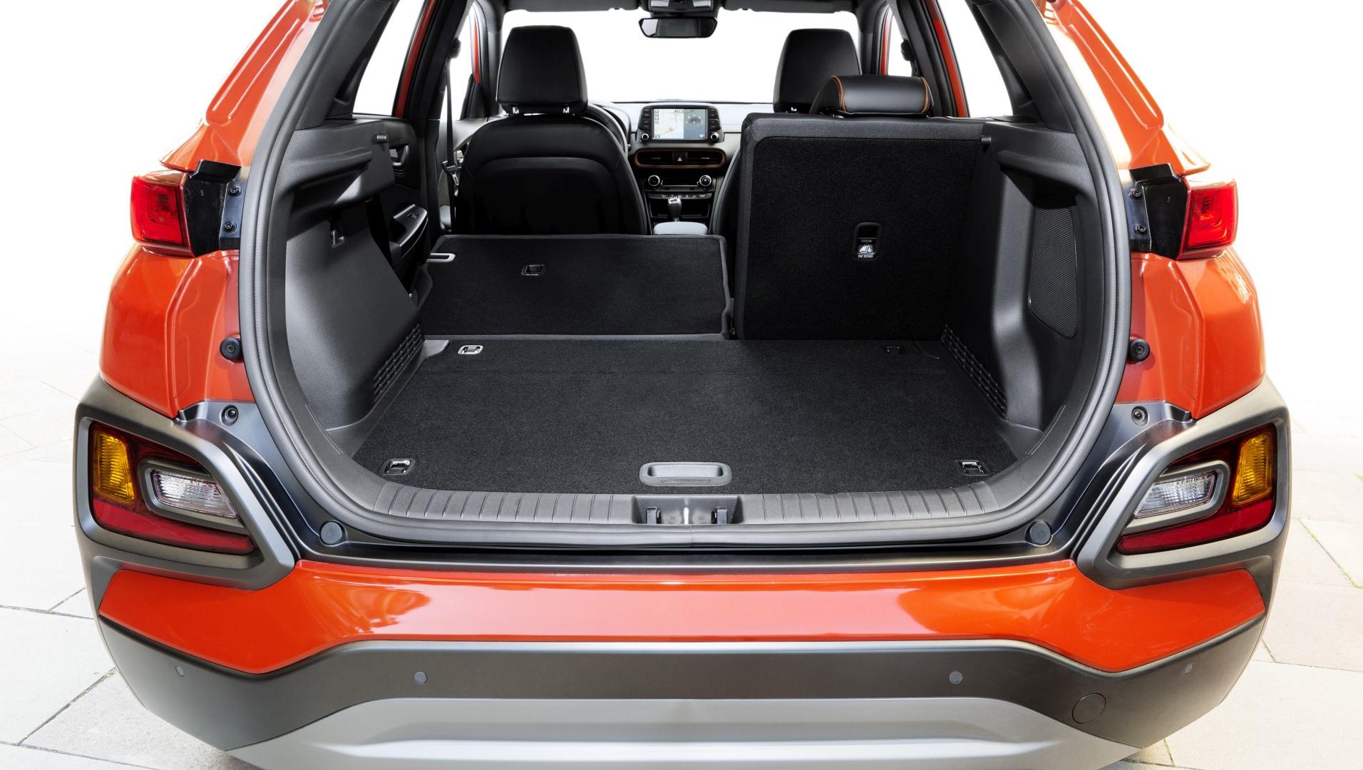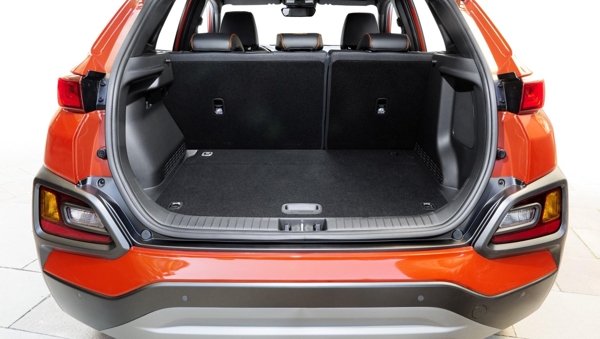 Wyposażenie również robi wrażenie, zwłaszcza w najwyższej obecnie wersji Premiere Style, w której znajdziemy między innymi: podgrzewane (trzy stopnie), ale też wentylowane (!) fotele przednie wraz z podgrzewaną kierownicą, wyświetlacz head-up, asystenta zjazdu ze wzniesienia, blokadę napędu 4x4 przy niskich prędkościach, asystenta pasa ruchu i martwego pola, pełne światła LED, czy bezkluczykowy dostęp do samochodu. We wnętrzu miejsca jest dużo, kabina jest dość szeroka, a na tylnej kanapie łatwo jest zająć wygodną pozycję, między innymi z racji sporej przestrzeni na nogi. Bolączką jest bagażnik: raptem 361 litrów to skromny wynik, który przystaje bardziej do małego miejskiego crossovera niż nawet małego SUV-a. Wszyscy ci, którzy planują dłuższy wypad na urlop w cztery osoby na pokładzie Hyundaia Kona, są skazani na używanie bagażnika dachowego.