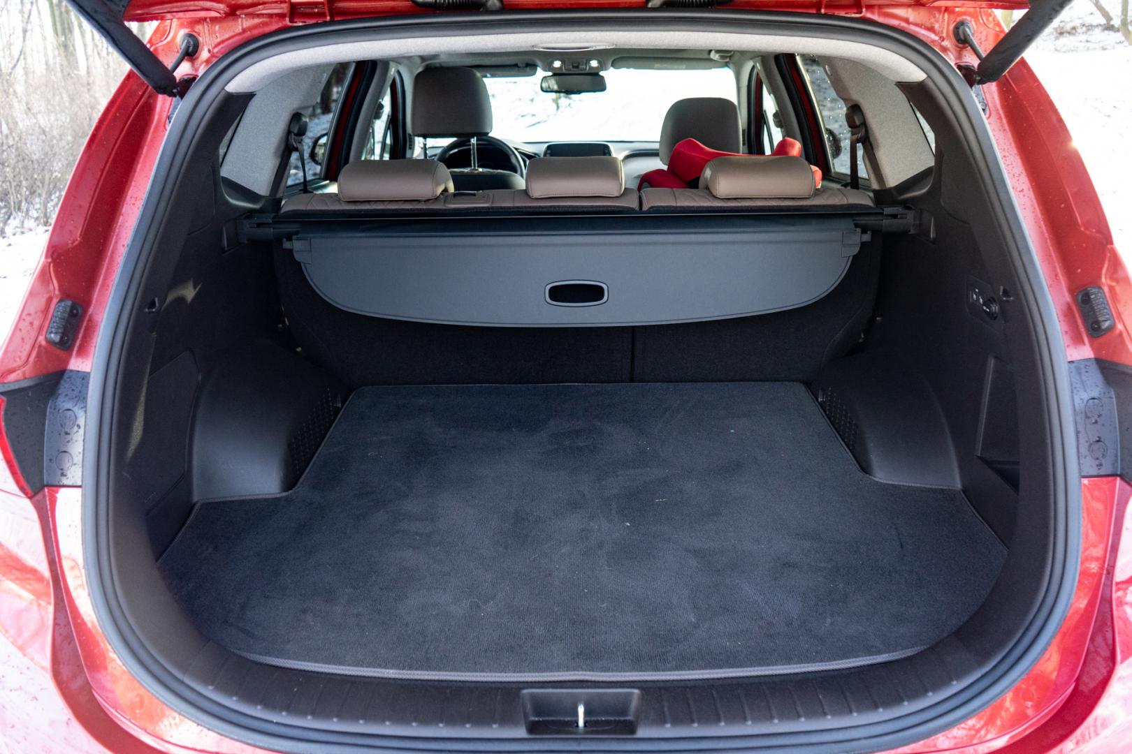 Elektrycznie podnoszona klapa bagażnika Hyundaia Santa Fe może podnieść się całkiem automatycznie, ale w dość dziwny sposób. By podniosła się sama, musimy stanąć w okolicy bagażnika, ale zanim to zrobimy, najpierw musimy opuścić pole, w którym wykrywany jest kluczyk. Jeśli więc przejdziemy od drzwi kierowcy do tyłu, system nie zadziała.