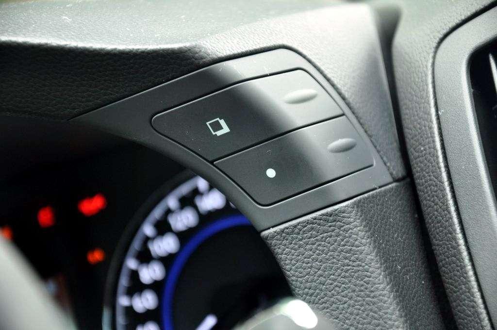 Wracając na przednie fotele – nie wyglądają one na sportowe „kubełki”, ale w zakrętach nie brakuje im podparcia bocznego. Ciekawym rozwiązaniem jest połączenie zegarów z kolumną kierowniczą – przy przestawieniu jej wysokości, kierownica nigdy nie zasłania wskazań zegarów. Na początku problem dla kierowcy sprawia mnogość przycisków na centralnej konsoli oraz niezbyt wygodne umieszczenie przycisków zmiany wskazań komputera pokładowego.