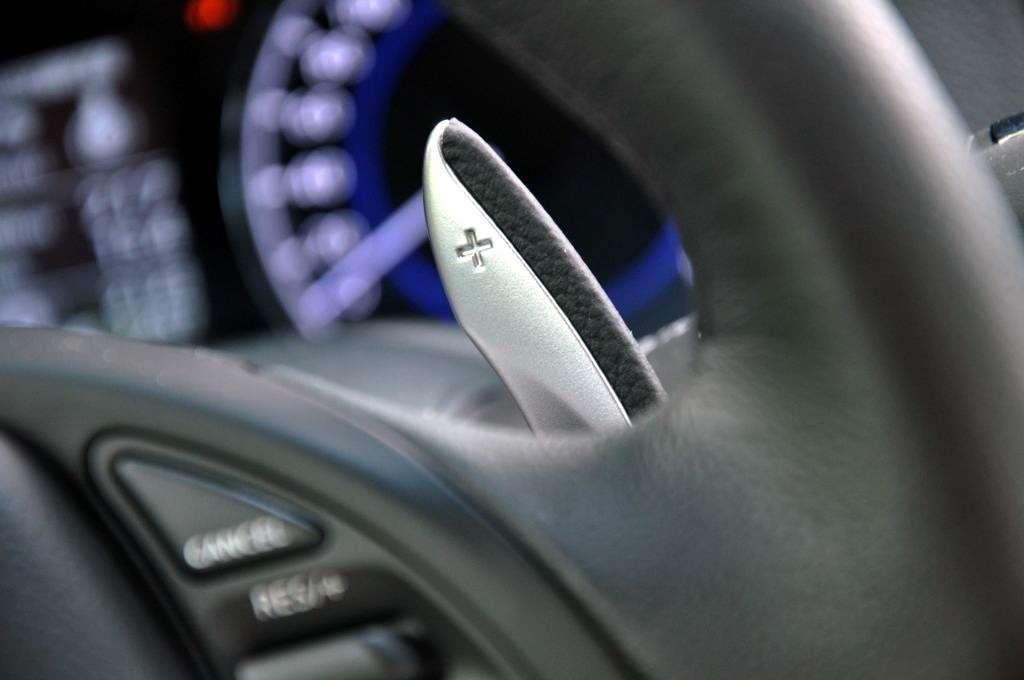 Po zajęciu miejsca kierowcy, szczególną uwagę zwracają na siebie wielkie łopatki do ręcznej zmiany biegów – tak wielkie, jakby ich szarpanie było podstawową czynnością wykonywaną w tym aucie. Po chwili tajemnica się wyjaśnia: łopatki są na stałe zamontowane na kolumnie kierowniczej i nie obracają się wraz z kierownicą, a więc muszą być wielkie, aby kierowca miał je pod ręką przy większości manewrów.