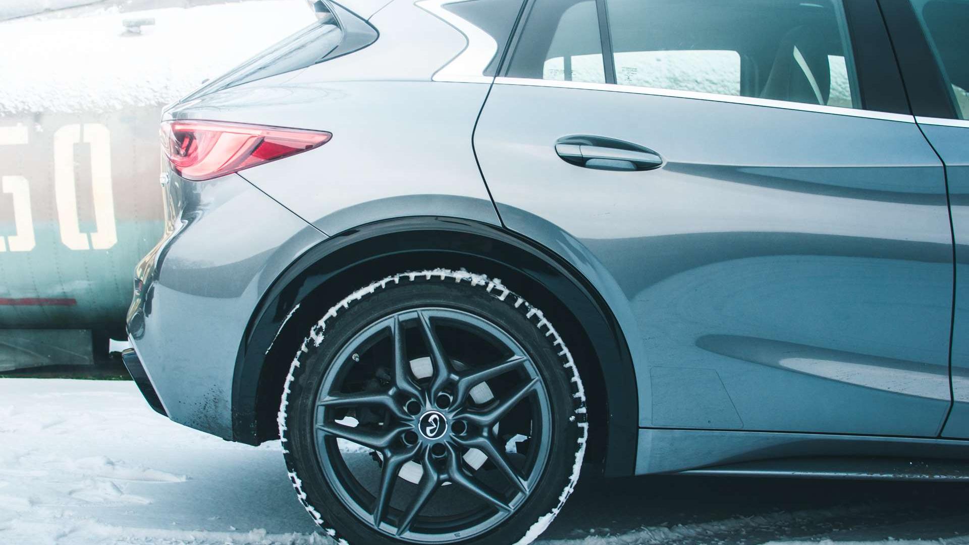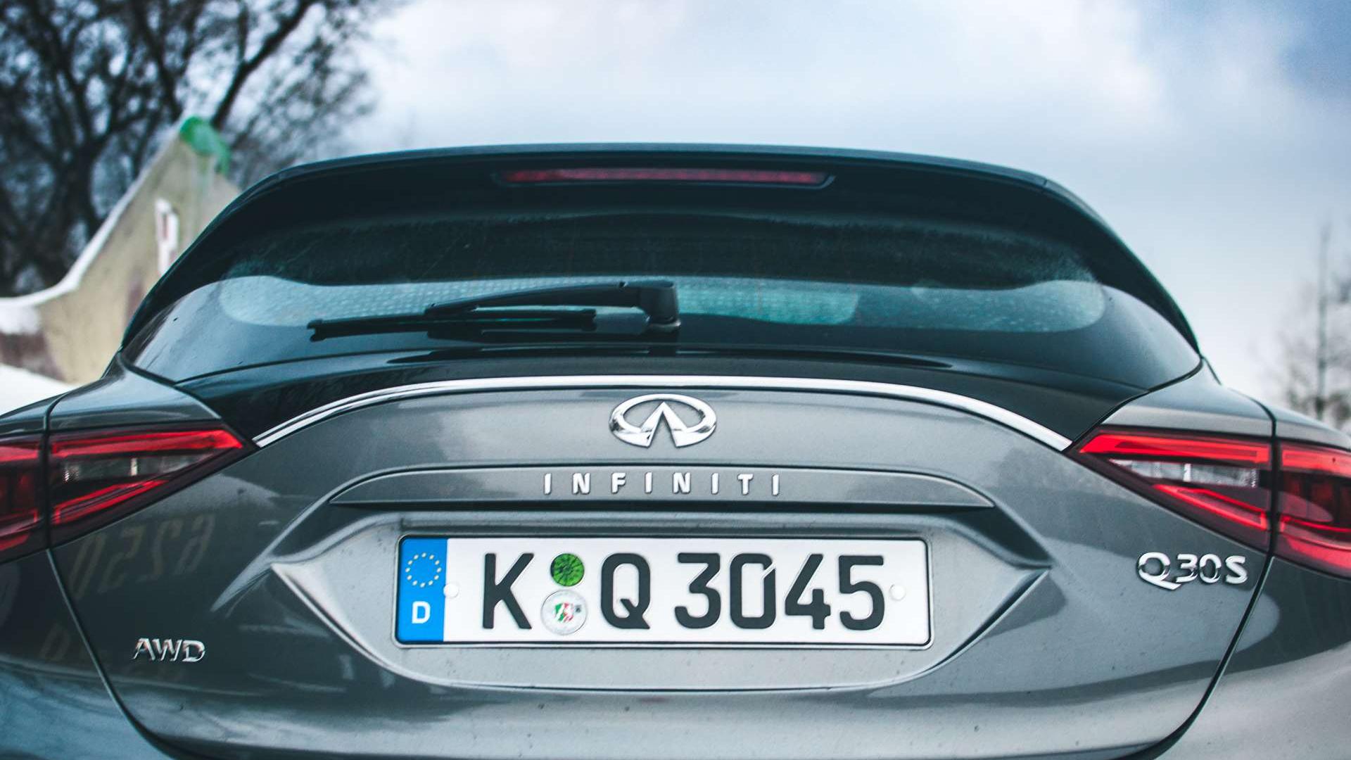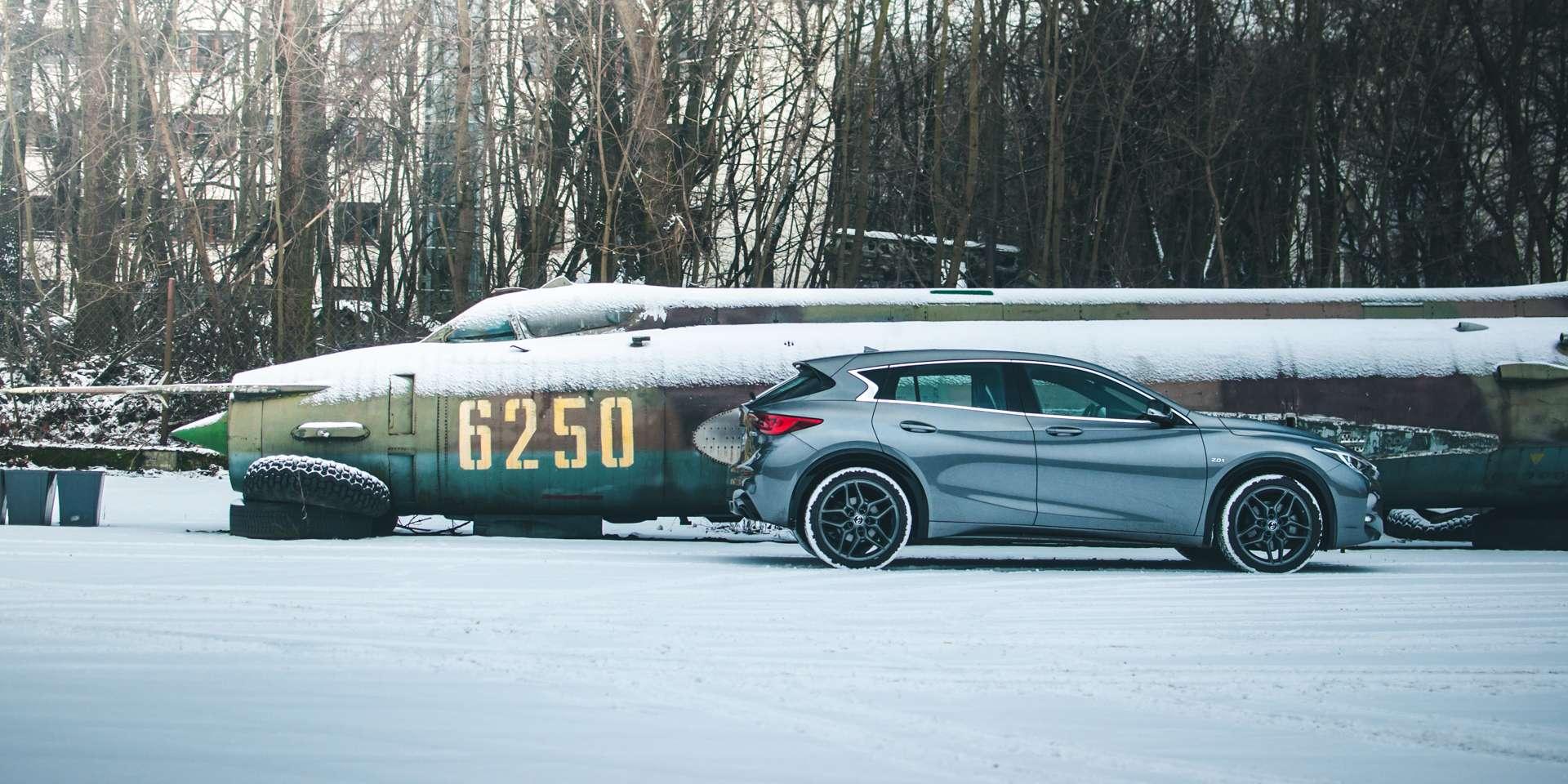 Zwróćmy też uwagę na hamulce. Już w podstawowych wersjach dostajemy pakiet tarczowych hamulców Brembo o średnicy 295 mm. Z silnikami 2.0T i 2.2d na przednią oś trafiają jeszcze bardziej skuteczne, 320-milimetrowe tarcze. Infiniti Q30 2.0T waży 1545 kg, czyli prawie o 100 kg więcej od wersji przednionapędowej, więc dobrze, że ta moc jest pod kontrolą.