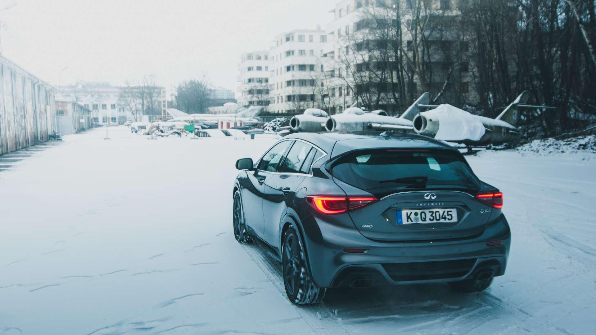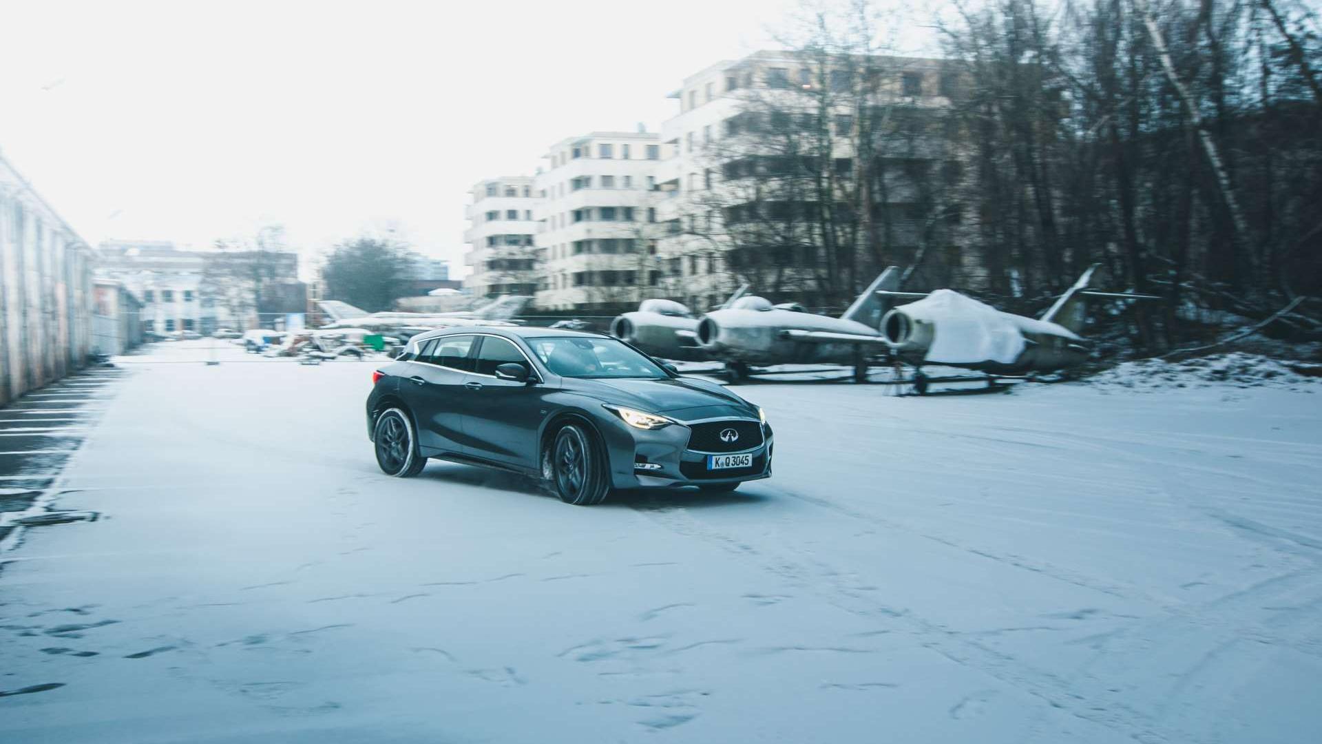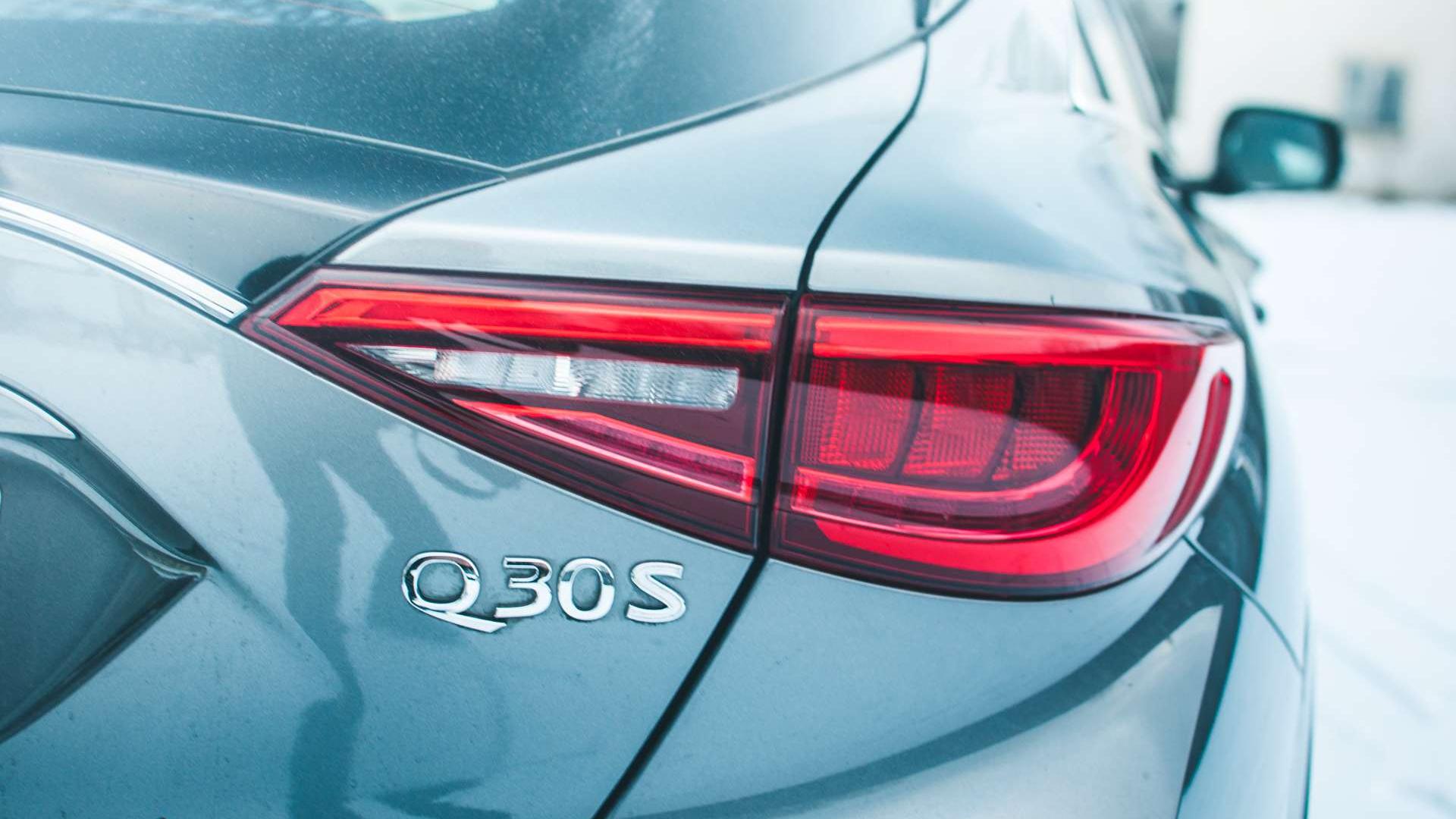 Zwróćmy też uwagę na hamulce. Już w podstawowych wersjach dostajemy pakiet tarczowych hamulców Brembo o średnicy 295 mm. Z silnikami 2.0T i 2.2d na przednią oś trafiają jeszcze bardziej skuteczne, 320-milimetrowe tarcze. Infiniti Q30 2.0T waży 1545 kg, czyli prawie o 100 kg więcej od wersji przednionapędowej, więc dobrze, że ta moc jest pod kontrolą.
