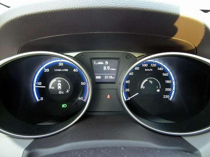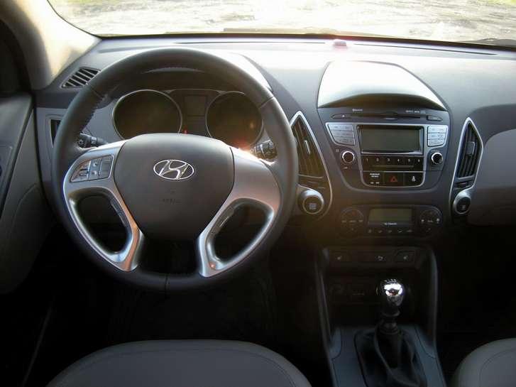 Skoro to auto jest takie dobre i niedrogie, to gdzieś musi tkwić haczyk. I tkwi – we wnętrzu. Tworzywa sztuczne są twarde, włącznie z tymi na kokpicie i obudowującymi przedział bagażowy. Wystarczy przewieźć kilka razy coś w stylu biurka, żeby ściany „kufra" były porysowane i wyglądały jak budka dla ptaków. Ale z drugiej strony co z tego – projekt wnętrza wygląda świetnie, „plastiki" mają ciekawą fakturę, a zegary są wyjątkowo nowoczesne i ładne. Jest jeszcze coś – może i materiały nie są z najwyższej półki, ale nie trzeszczą i spasowano je na wysokim poziomie. Niektórych może tylko drażnić niebieskie podświetlenie – Volkswagen przez to przechodził i niezbyt mu się to spodobało. Klientom chyba również nie, choć w ix35 ten kolor ma delikatniejszą barwę.