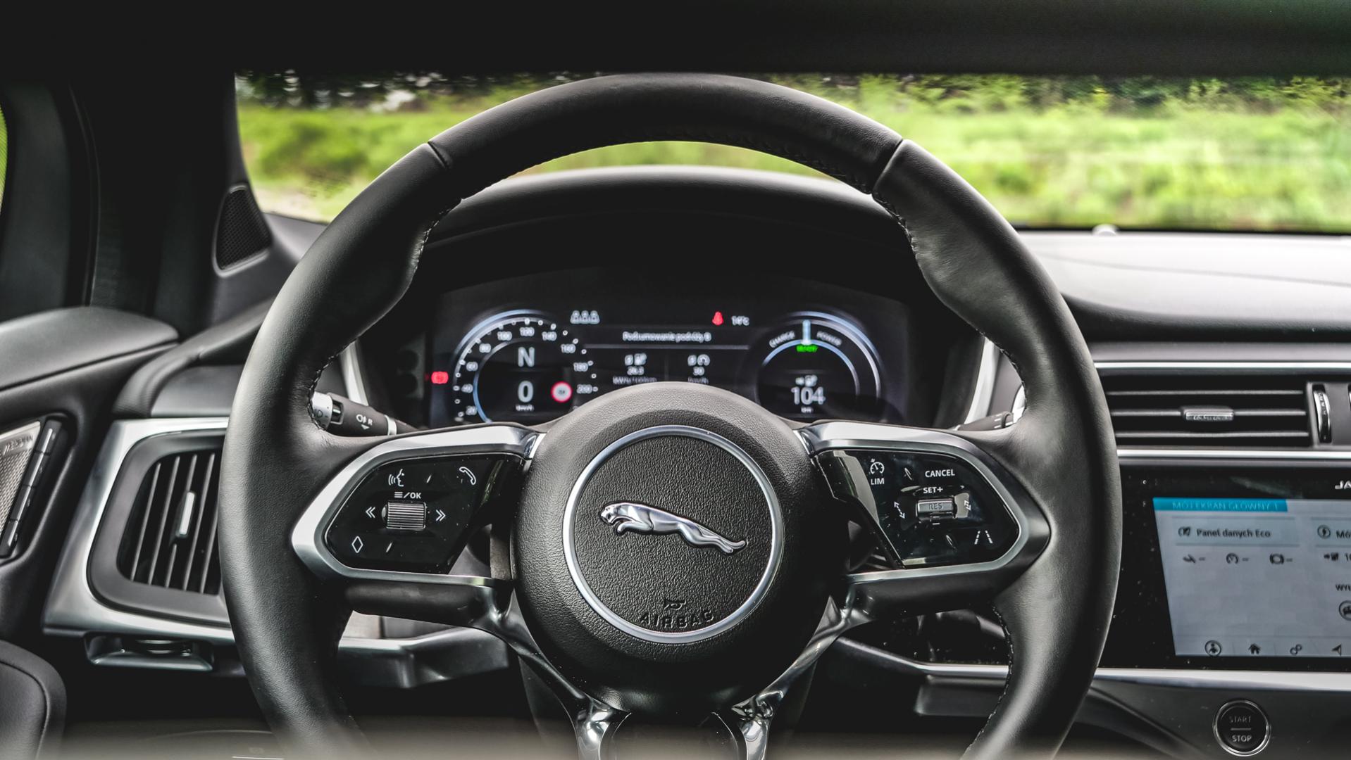 Jazda Jaguarem I-Pace jest po prostu inna. Przyspieszenie na poziomie BMW M2 czy Golfa R wciska w fotel, ale nie czujemy ani zmian biegów, ani tym bardziej nie słyszymy silnika. Nisko położony środek ciężkości daje mnóstwo stabilności w zakrętach. Czuć jednak, że Jaguar jest ociężałym kotem – waży aż 2220 kg.