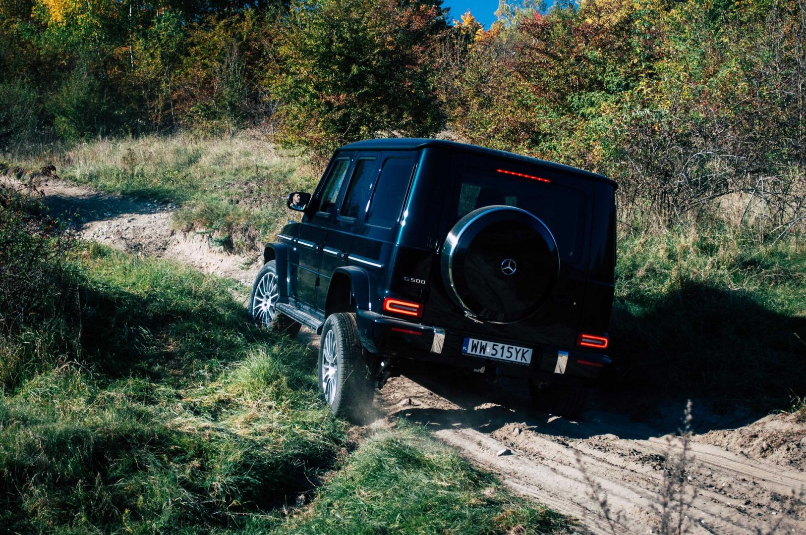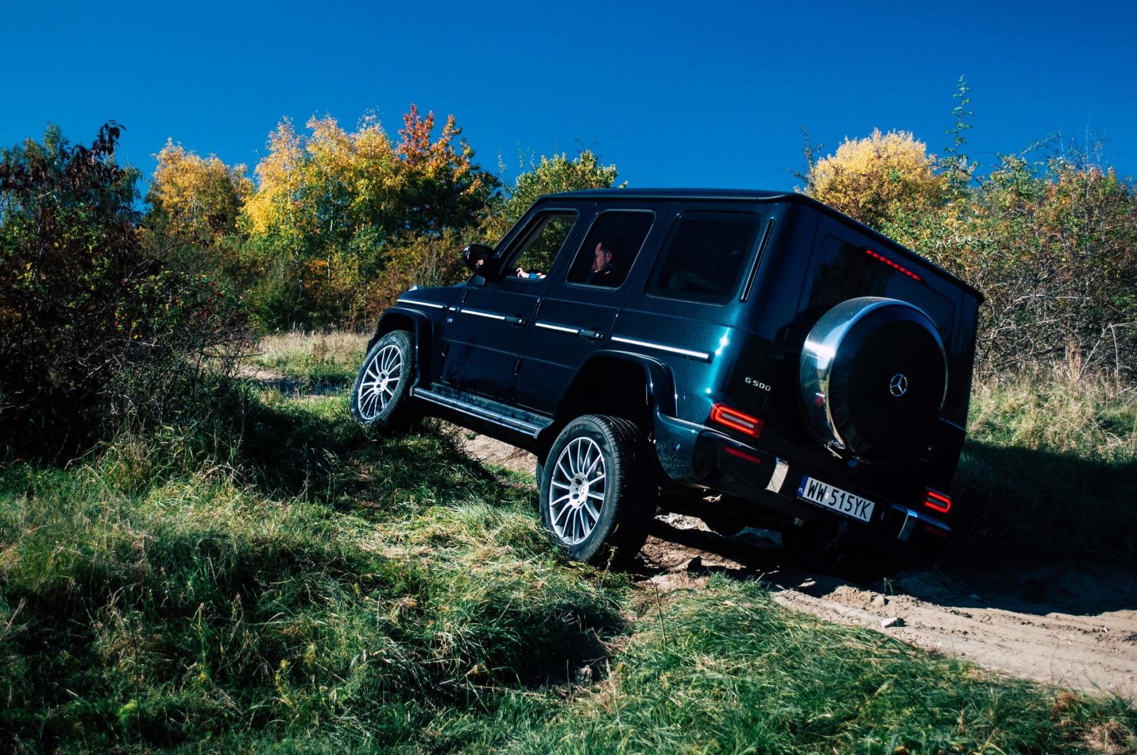 Z dziennikarskiego obowiązku zabraliśmy Klasę G na tor crossowy pod Krakowem. Już bez spięcia mechanizmów różnicowych samochód radził sobie świetnie, ale po włączeniu wszystkich blokad był po prostu nie do zatrzymania. Luźna nawierzchnia, wzniesienia i różnice poziomów na drodze to za mało, by Klasa G pokazała swój potencjał. Przy dobrej pogodzie nie znaleźliśmy miejsca, które sprawiłoby Klasie G jakąkolwiek trudność. A jeśli nawet byśmy takie znaleźli, np. stromy błotnisty podjazd, to pewnie elementem, który by zawiódł, byłyby tylko opony. Założenie opon z kostką typu AT, a już najlepiej MT rozwiązałoby wszelkie problemy.