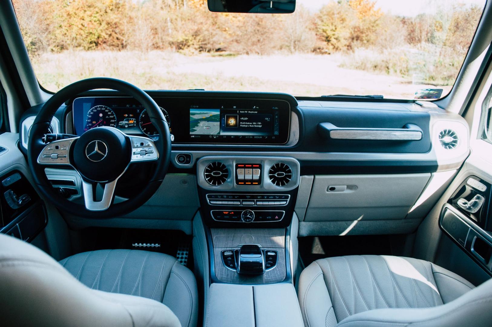 Jak to jednak jest, że samochód, w którym drzwiami trzeba trzaskać, jak w Polonezie, kosztuje aż tyle? Wystarczy zajrzeć do środka, a później pod maskę. Nie od dzisiaj na G-klasę mówiło się „terenowa S-klasa”. Nie mylić z „SUV-em klasy S”, którym jest przecież GLS.