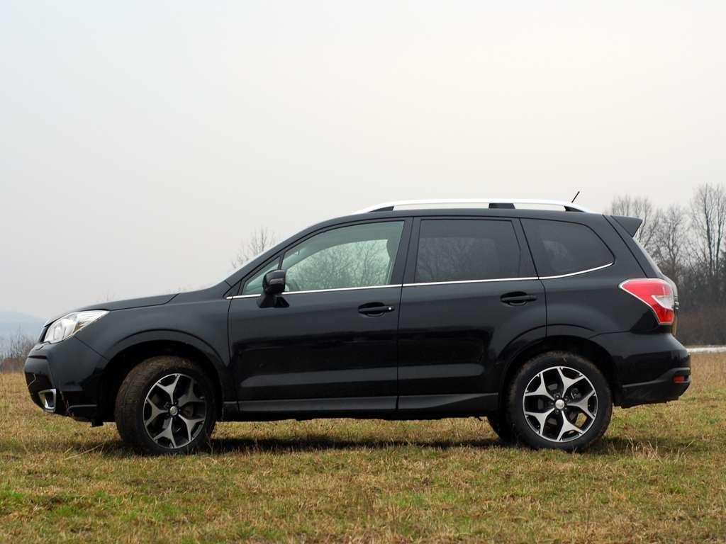 Jak zapewne pamiętacie, pierwszy „Leśnik” przypominał bardziej obecne modele Allroad (Audi) czy Alltrack (Volkswagen). Podwyższone zawieszenie, plastiki na błotnikach i drzwiach oraz – co oczywiste – napęd na cztery koła. Z czasem jednak urósł, trafił do klasy crossoverów (cokolwiek by to znaczyło), aż stał się SUVem, wciąż opierając się na podwoziu Imprezy. Dlatego pomimo pokaźnych rozmiarów wciąż prowadzi się jak po szynach – o czym później.