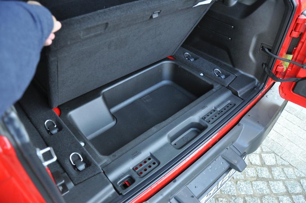 Oczywiście krótkie nadwozie wypada w tej dziedzinie zauważalnie gorzej. Fotele przednie odchylają się dość daleko do przodu, więc odrobina zwinności wystarczy, by wsiąść, ale i wygramolić się z powrotem. Wbrew pozorom wcale nie jest tam ciasno, a kolana nie ucierpią nawet u dorosłych. Ten komfort nie jest też w żaden sposób okupiony wyrzeczeniami ze strony siedzących z przodu. Za to bagażnik w krótkiej wersji jest symboliczny (192 l), więc do przewiezienia czegoś więcej niż dwóch małych plecaków auto musi zmienić się w dwuosobowe. Znacznie lepiej wypada wersja Unlimited, w której do bagażnika wejdzie 533 llitry, czego tylko zechcemy.