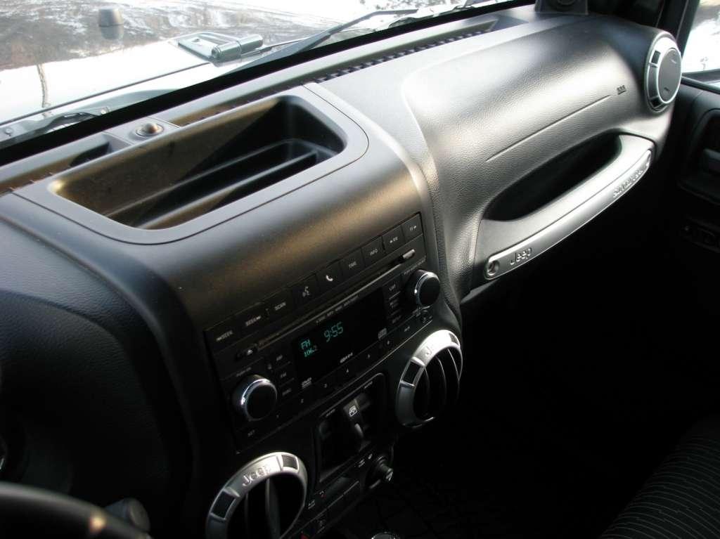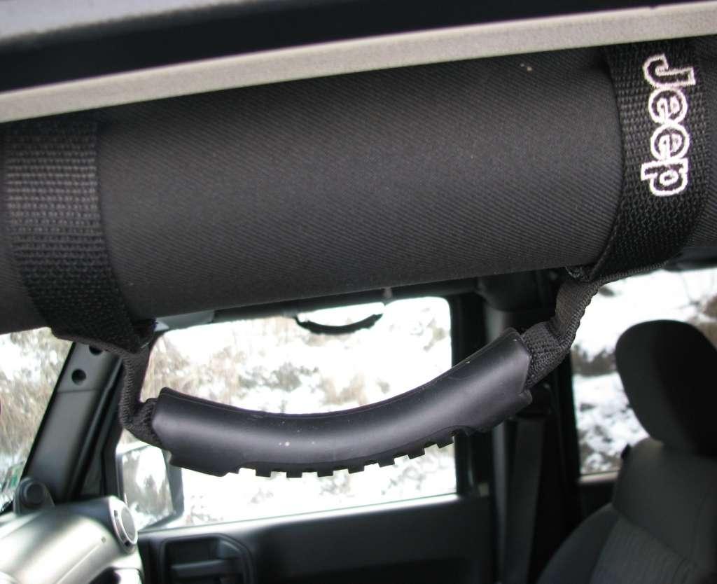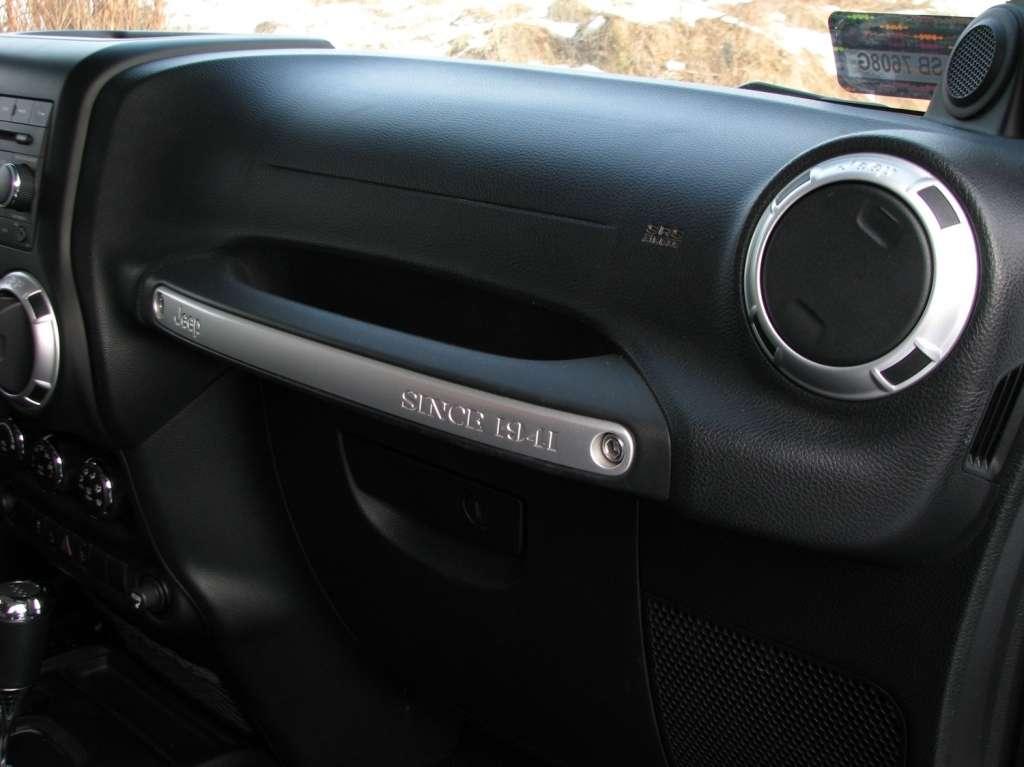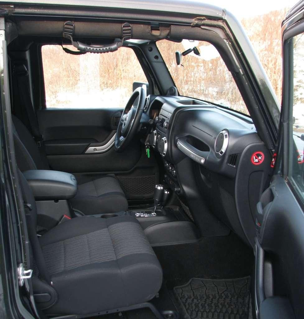 Wrangler ma otwarte nadwozie. Rurowa konstrukcja klatki spełniającej zadanie pałąków przeciwkapotażowych umożliwia założenia dachu z tkaniny lub sztywnych paneli. Ze względów bezpieczeństwa rury obłożono miękkim tworzywem. Umieszczane tradycyjnie nad drzwiami uchwyty w tym wypadku mają charakter podwieszonych na klatce pasków. Ciekawostką jest umieszczenie na klatce także dwóch, spośród 7 głośników opcjonalnego systemu Infinity. Dwa wysokotonowe zostały umieszczone na desce rozdzielczej, a subwoofer trafił do bagażnika, zmniejszając nieco jego funkcjonalność.