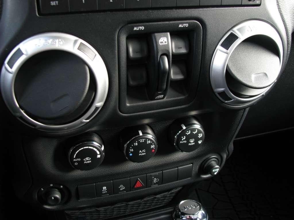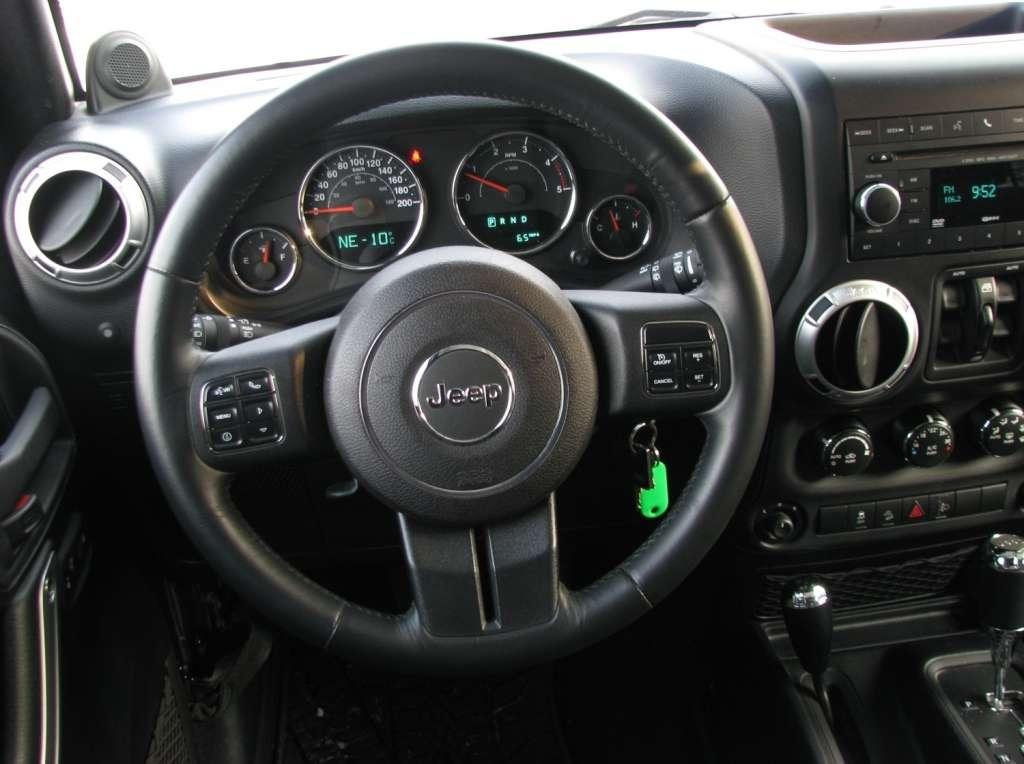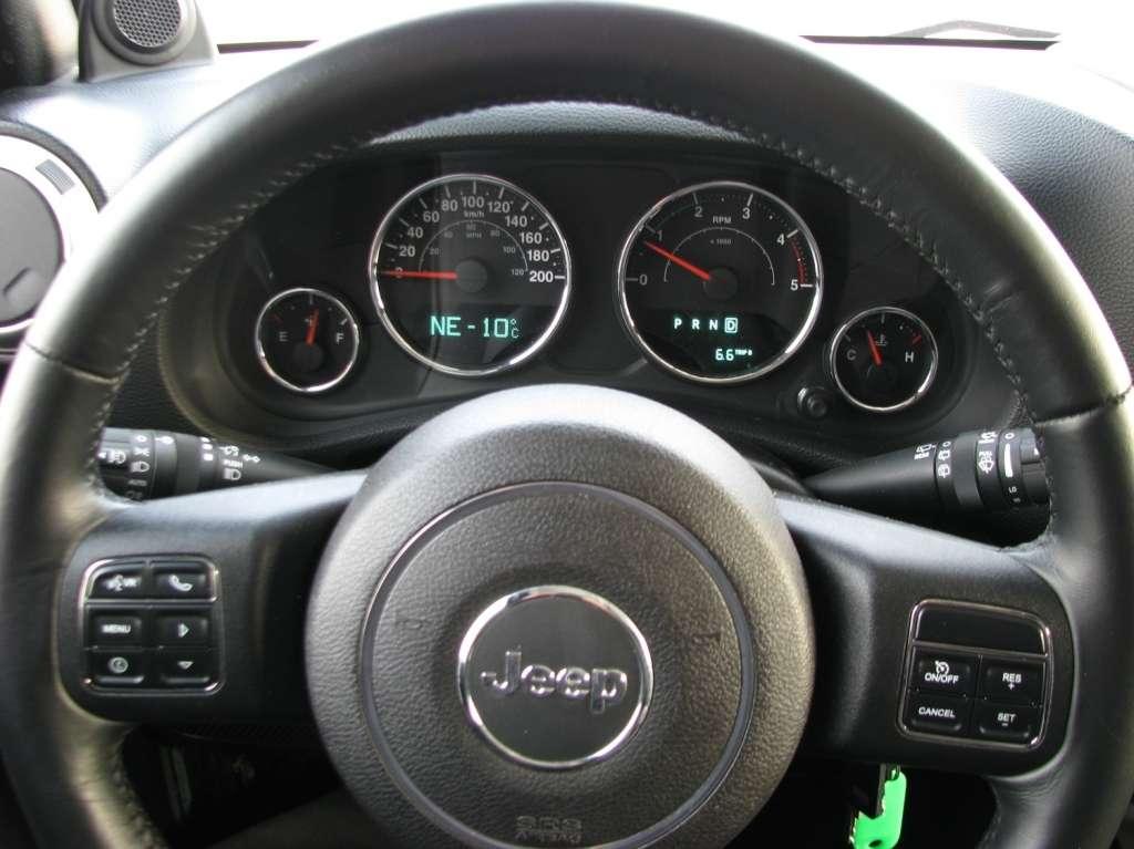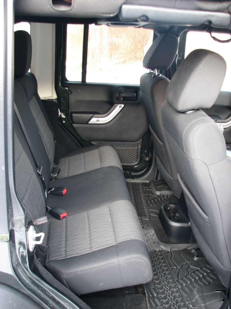 Wrangler ma otwarte nadwozie. Rurowa konstrukcja klatki spełniającej zadanie pałąków przeciwkapotażowych umożliwia założenia dachu z tkaniny lub sztywnych paneli. Ze względów bezpieczeństwa rury obłożono miękkim tworzywem. Umieszczane tradycyjnie nad drzwiami uchwyty w tym wypadku mają charakter podwieszonych na klatce pasków. Ciekawostką jest umieszczenie na klatce także dwóch, spośród 7 głośników opcjonalnego systemu Infinity. Dwa wysokotonowe zostały umieszczone na desce rozdzielczej, a subwoofer trafił do bagażnika, zmniejszając nieco jego funkcjonalność.