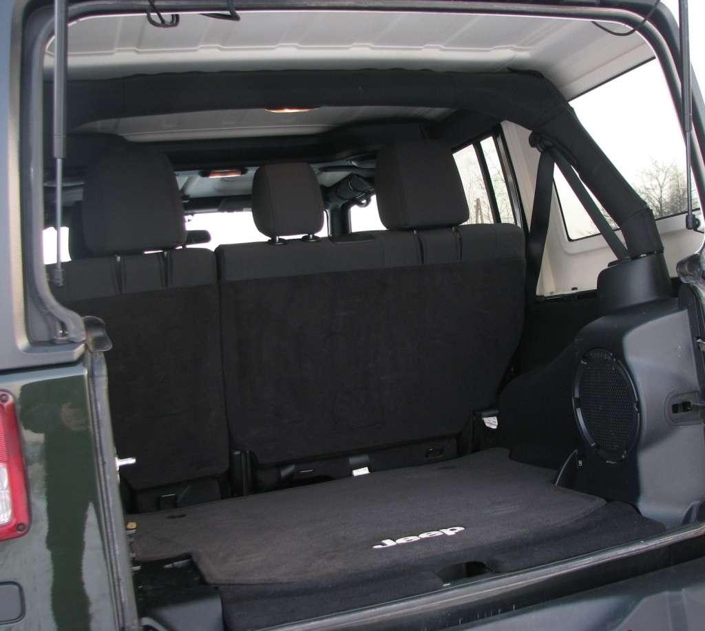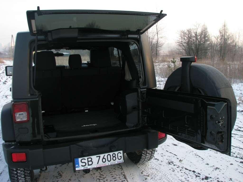 W miejskiej ciasnocie Wrangler Unlimited ma nieco wad – duże koła zmniejszają promień skrętu, więc zawracanie czy ustawianie auta na miejscach parkingowych wymaga więcej manewrów. Widzialność w tył to duże wyzwanie dla wyobraźni. Nie dość, że samo okno jest niewielkie, jeszcze zasłania je w centrum fragment zawieszonego na klapie bagażnika koła zapasowego i sterczące ponad nim trzecie światło Stop. Poza tym w lewym (kiedy patrzymy od strony kierownicy) górnym rogu umieszczono mechanizm wycieraczki okna i duży moduł także skutecznie ogranicza widoczność. Na tle tylnych bocznych okiem mamy rury z klatki wraz z pasami bezpieczeństwa dla tylnych siedzeń.