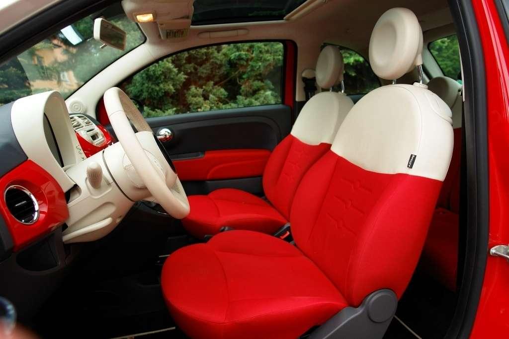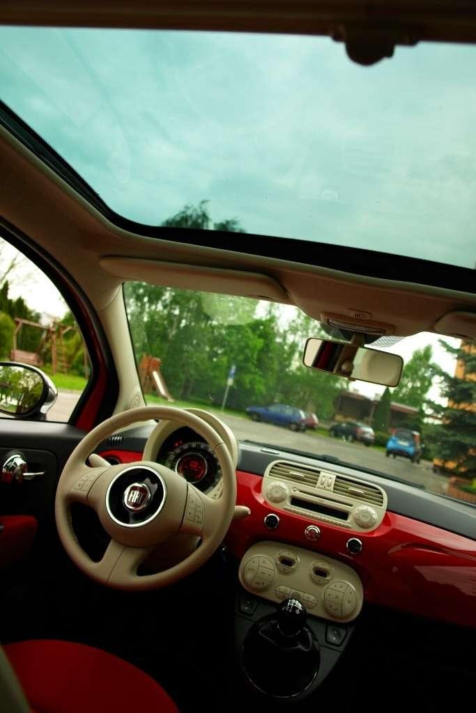 Mały nie oznacza w tym przypadku gorzej wyposażony. Na pokładzie jest aż siedem poduszek powietrznych oraz ABS, EBD i system wspomagania nagłego hamowania. Wszystko w serii. Z kolei ESP montuje się standardowo jedynie w mocniejszej 100-konnej wersji 1,4 16v. Oprócz obłędnej palety lakierów również kontrastujące dwubarwne okrycia wierzchnie z oferty Bicolore. Za dopłatą „500-tka”może mieć takie frykasy jak biksenonowe reflektory, panoramiczny szklany dach czy skórzaną tapicerkę. To również świadczy o wyjątkowości tego gadżetu.