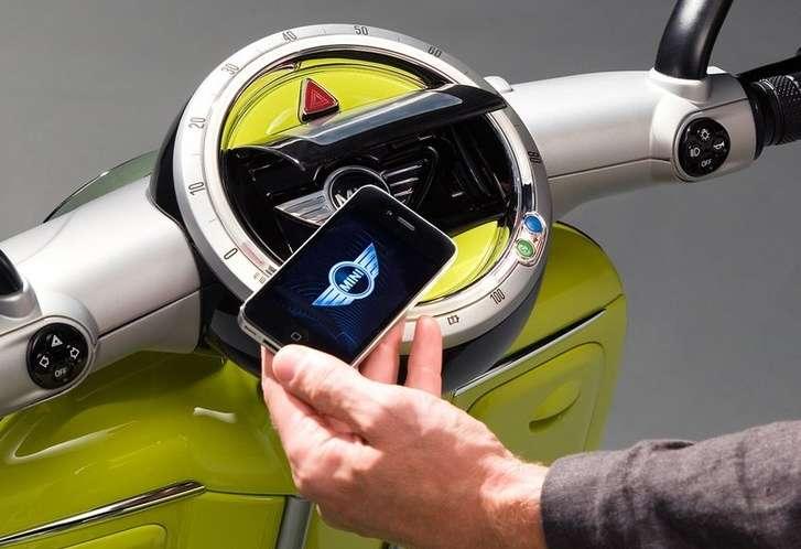 Tablica rozdzielcza Scootera E przypomina okrągłą tarcze samochodów Mini, ale w jej centrum jest miejsce na Smartphona, który służy jako kluczyk, telefon i centrum informacji. Przy pomocy systemu Bluetooth łączy się z słuchawkami wewnątrz kasku kierowcy i umożliwia rozmawianie także podczas jazdy przez umieszczony w kasku mikrofon. Smartphon, wyposażony w odbiornik GPS służy także jako nawigacja, wykorzystując serwis Google Maps Dzięki sieci skuter dowie się, jeżeli w okolicy pojawi się inny skuter tej marki.