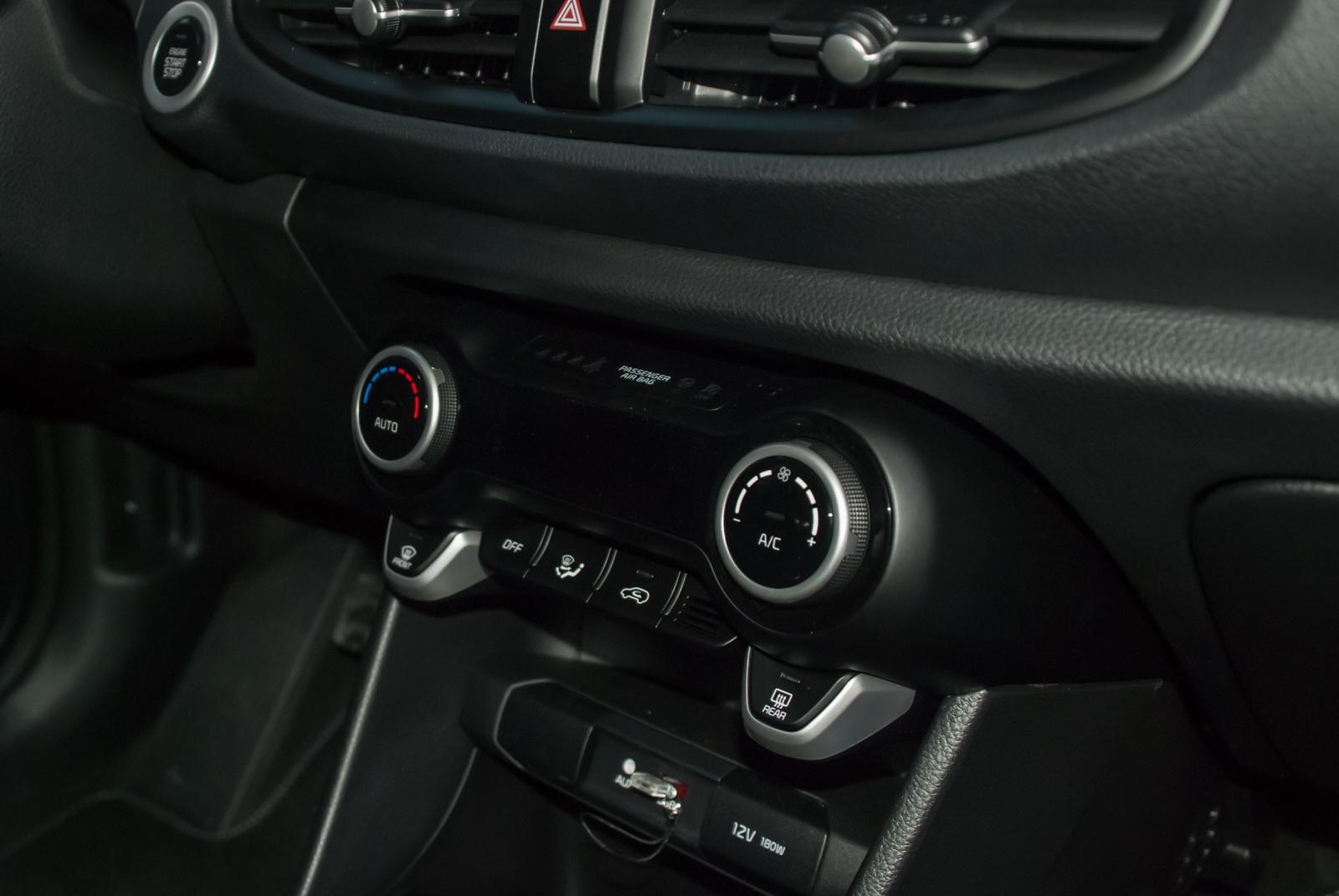 Pierwsza rzecz, która rzuca się w oczy zaraz po otwarciu drzwi, to duży 7-calowy ekran dotykowy, umieszczony na środku deski rozdzielczej. Został on wyposażony w system Apple Car Play i Android Auto. Poniżej znalazł się prosty panel do obsługi klimatyzacji (wyglądający nieco jak pad do X Boxa), który do złudzenia przypomina ten z modelu Rio. Jeszcze niżej znajdziemy schowek ze składanymi uchwytami na napoje oraz… miejsce do bezprzewodowego ładowania smartfona. Dodatkowo kierowca ma do dyspozycji typową dla nowych modeli Kii wielofunkcyjną kierownicę. Niestety jest na niej dość dużo przycisków, przez co obsługa nie jest zbyt intuicyjna. Innym rarytasem są elektrycznie sterowane wszystkie szyby (w podstawowej wersji wyposażenia M – tylko przednie).