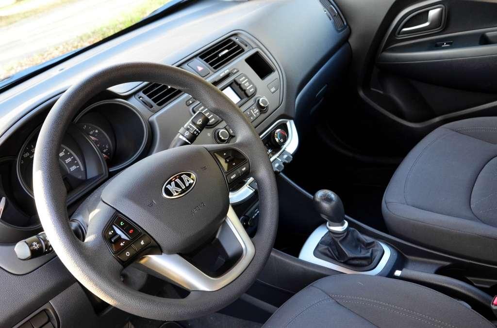 W środku nie znajdziemy żadnych specjalnych materiałów, a w zamian dostajemy klasyczne plastiki o gładkiej fakturze, jak i te mające imitować skórę. Na szczęście deska rozdzielczość nie razi nas pustą czernią, a materiały przełamane są elementami w kolorze srebrnym i piano Black. Na pokrętłach dodano z kolei chromowane obwódki, co z pewnością dodaje elegancji. Oczywiście dominuje prostota, ale jest to esencja tego auta. Kierowca ma dostać wszystko to, co mu potrzebne – i nic poza tym. I tak też się dzieje. W najwyższej wersji wyposażenia, zwanej XL, pojawi się tu koło kierownicy i dźwignia zmiany biegów obszyte skórą, radio z nieszczególnie dużym, jak na wyższe standardy, ekranem, dalej elektryczne szyby z przodu i z tyłu, automatyczne wycieraczki z czujnikiem deszczu czy wskaźnik wyboru optymalnego biegu. Spasowanie materiałów, nie jest najlepsze, bo kiedy tylko na drodze pojawiają się nierówności, z wnętrza dochodzą nas ciche, skrzypiące dźwięki. Kia Rio to w końcu samochód budżetowy, to też taka mała dolegliwość nie dziwi.