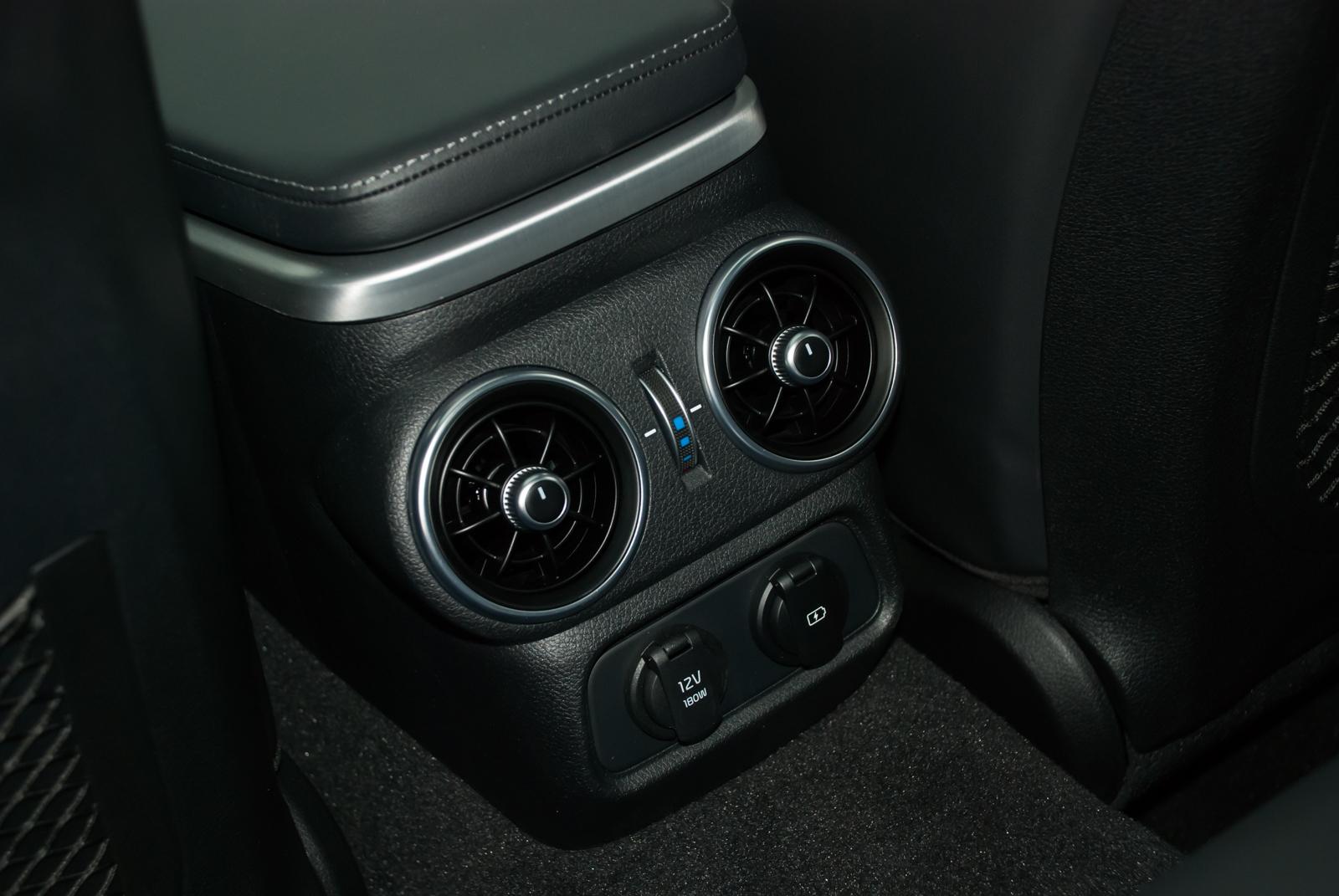Wnętrze jest bardzo dobrze wykonane. Wszędzie dominują ciemne barwy, przełamane prostym aluminium. Przednie fotele są podgrzewane i wentylowane, jednak nie zapomniano także o pasażerach podróżujących z tyłu. Im również będzie ciepło za sprawą podgrzewanej tylnej kanapy. Dodatkowo z tyłu znajdziemy także drugą wtyczkę USB. Kształt kratek nawiewu był inspirowany lotnictwem, tak jak wiele innych detali i motywów, które znajdziemy w kabinie.