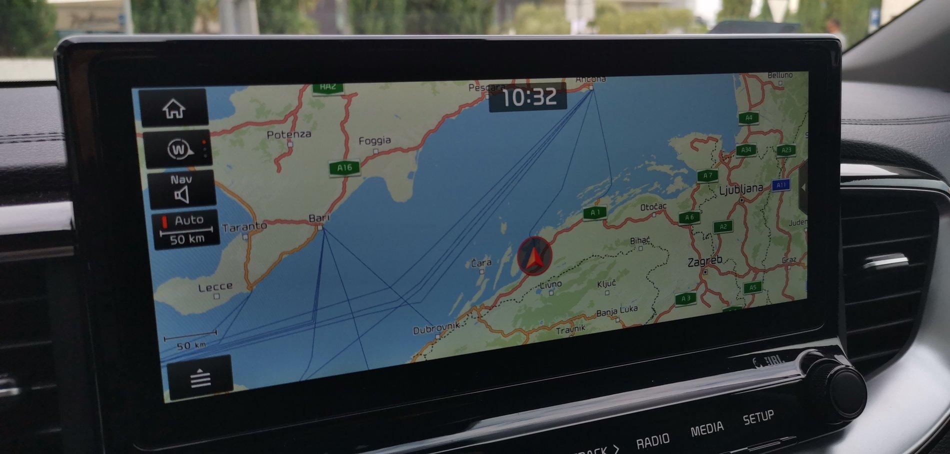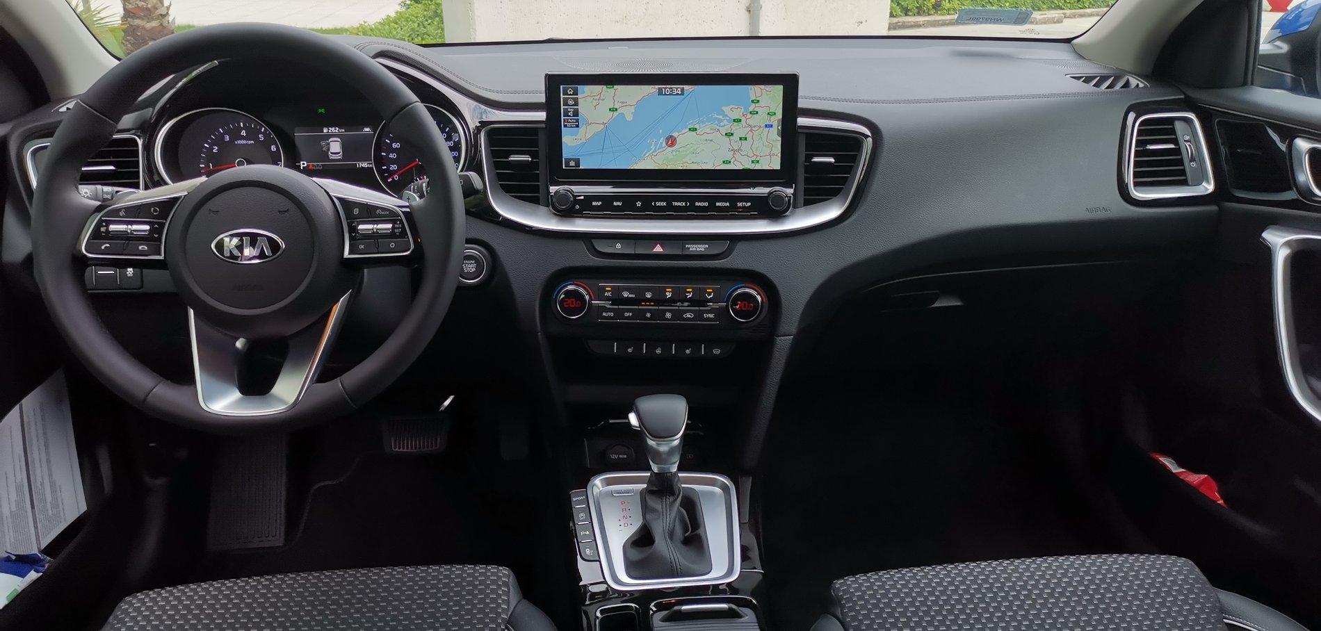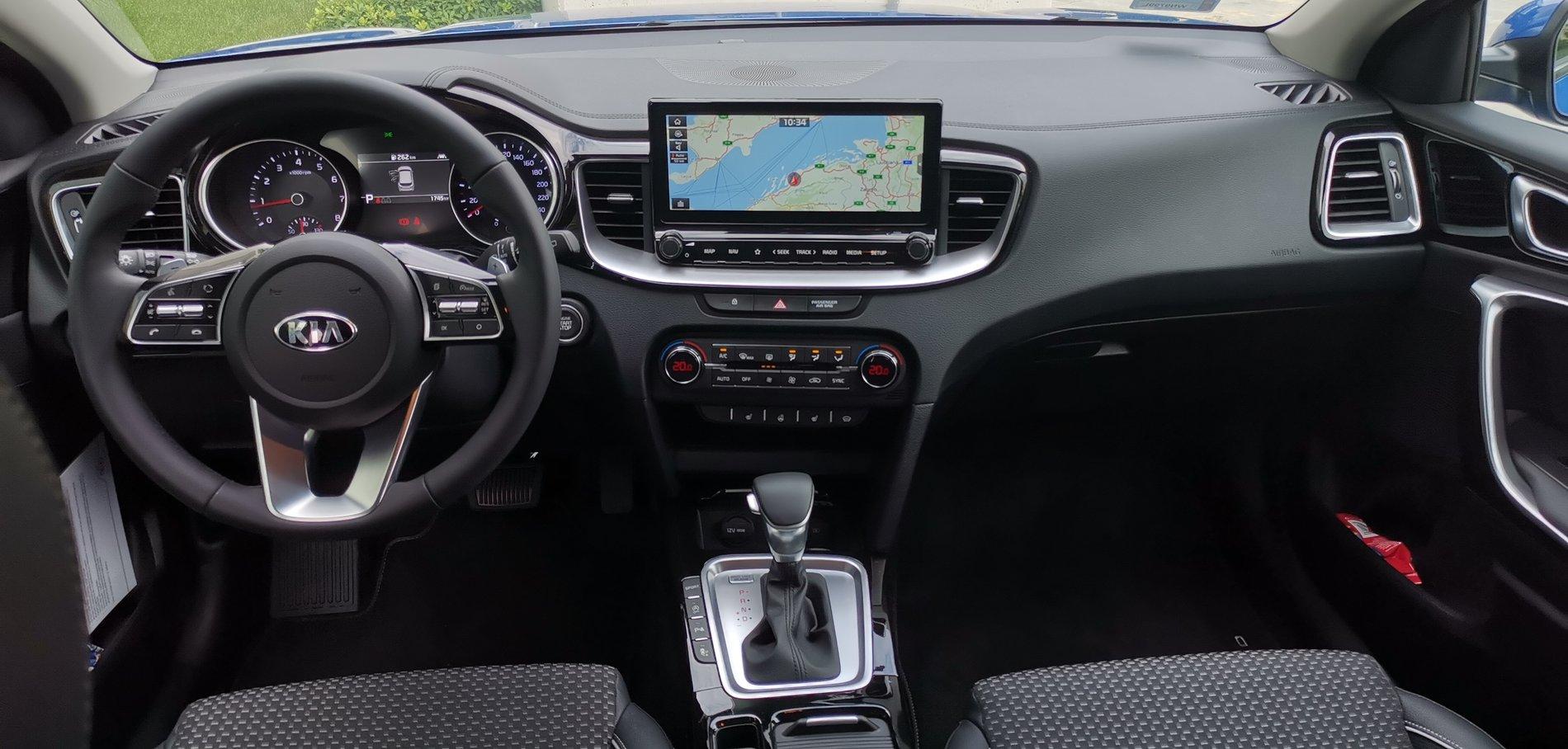 To wnętrze oczywiście znamy już z Ceeda, ale są tu pewne nowości. Jest panoramiczny ekran o przekątnej 10,25 cala. Jak czytałem w informacji prasowej, tutaj kryje się nowy system UVO Connect, który do Polski wejdzie już w przyszłym roku. UVO Connect będzie na stałe podłączony do Internetu, dzięki czemu będzie mógł się zdalnie aktualizować, sprawdzać ruch drogowy, wyszukiwać większą liczbę punktów POI i tak dalej.