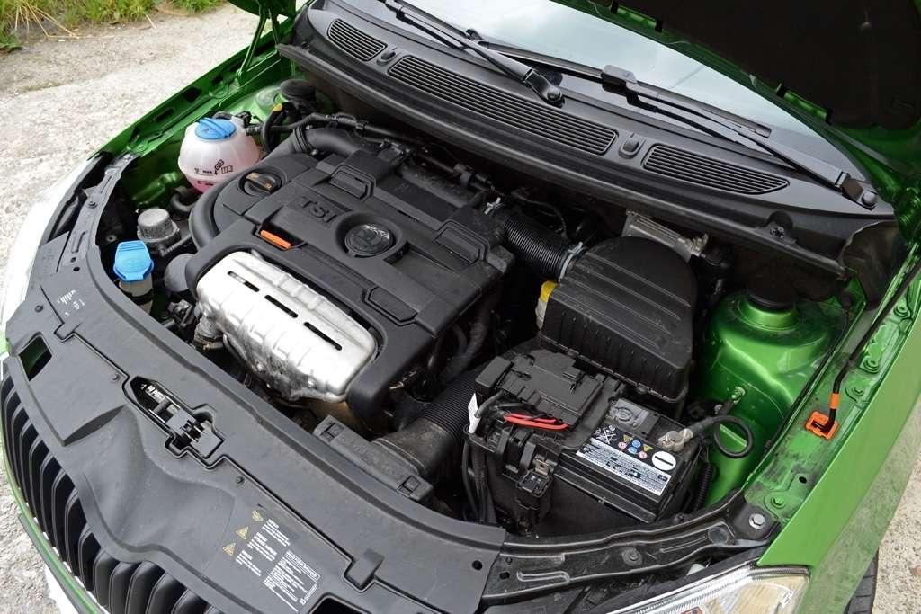 Na szczęście z wyglądem zewnętrznym koresponduje silnik. I to nie byle jaki. Ma tylko 1.4 litra pojemności, jest jednak doładowany kompresorem i turbosprężarką. Rozwija dzięki temu 180 KM przy 6200 obr/min oraz wydaje z siebie 250Nm momentu obrotowego. Maksymalna prędkość obrotowa - 7 tysięcy. Przyspieszenie do 100 km/h - 7,3 sekundy. Prędkość maksymalna - 226 km/h (i to przy dość sporej masie własnej wynoszącej 1318 kg). Liczby brzmią nieźle, nawet lepiej niż samo auto - z układu wydechowego wydobywają się bowiem dźwięki bardziej przypominające kosiarkę niż szybkie auto o sportowym zacięciu. Reakcja na dodanie gazu jest żywa, a sprężarka mechaniczna powoduje, że auto przyspiesza równomiernie od samego dołu. Z motorem łączona jest tylko jedna przekładnia – 7-stopniowa automatyczna, dwusprzęgłowa skrzynia DSG. Skrzynia błyskawicznie reaguje odpowiednią redukcją na dodanie gazu, a biegi zmienia bez najmniejszych szarpnięć.