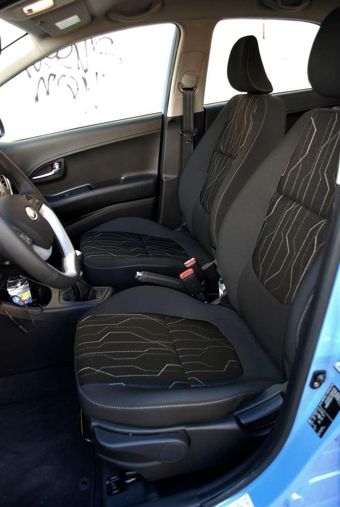 Wnętrze jest zaskakująco spore jak na tę klasę auta i pozwala bez problemu podróżować czterem osobom. Pasażerów uprzedzić należy jednak, żeby zbytnio nie szaleli z bagażem, bo 200 litrów bagażnika jest wartością symboliczną. Myślę, że dobrym rozwiązaniem byłoby zastosowanie przesuwnej tylnej kanapy - wtedy przy mniejszej liczbie osób na pokładzie, moglibyśmy znacznie więcej rzeczy schować do bagażnika. Można oczywiście posiłkować się złożeniem tylnej kanapy, ale ja osobiście wolę, jak mi się nic po samochodzie nie przemieszcza podczas jazdy. Wygoda i trzymanie boczne foteli na jest tyle dobre, że na zakrętach nie musiałem trzymać się kierownicy. Właśnie, a propos kierownicy – jej pogrubiony i miękki w dotyku wieniec świetnie leży w dłoniach, a jeśli zechcemy może być nawet podgrzewany. Wnętrze Picanto będzie można skonfigurować na wiele różnych sposobów, dzięki różnym pakietom wykończenia. Wyposażenie może obejmować m.in. szyby z filtrem UV, automatyczną klimatyzację, elektrycznie składane lusterka, światła główne z funkcją oświetlenia drogi do domu i „powitania”, półkę na drobiazgi przy fotelu pasażera, schowek pod podłogą, otwierany uchwyt na dwa napoje z delikatnym podświetleniem, podświetlane lusterka w osłonach przeciwsłonecznych czy wskaźnik zmiany biegu wspomagający oszczędny styl jazdy. Do wyboru, do koloru.