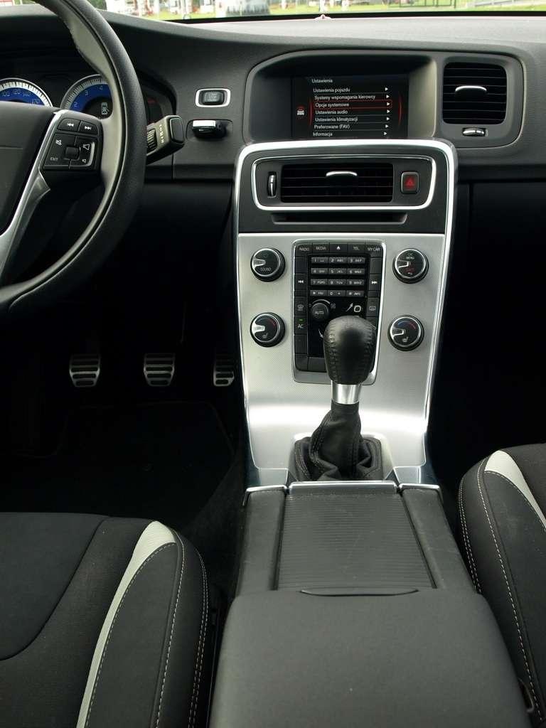 Równie atrakcyjnie prezentuje się wnętrze. Wszystkie użyte materiały są miękkie i wręcz emanują solidnością. Cóż, jakość może nieco ustępuje tej z Audi czy BMW, ale z kolei S60 ustępuje im ceną. Jeżeli chodzi o ergonomię „Szwed” nie ma się czego wstydzić. Zaraz po zajęciu miejsca za kierownicą czujesz, że skrojono je specjalnie dla ciebie. Sportowe fotele z atrakcyjną dwukolorową tapicerką dobrze opinają ciało, konsola środkowa skierowana jest nieco w twoją stronę, wieniec kierownicy - mimo że w tej sportowej wersji mógłby być grubszy - dobrze leży w dłoniach, a zegary to prawdziwa klasyka przejrzystego minimalizmu. Atrakcyjności wnętrzu nadaje duży centralnie umieszczony nawiew (będzie pewnie przedmiotem ciągłych sporów między kierowcą a pasażerem) i niesymetryczne kształty nawiewów bocznych. Nieco trudności nastręcza obsługa nawigacji za pomocą pokrętła z dwoma przyciskami, ale sztukę tę da się opanować. Chociaż cały system S60 przy zmyślnych multimedialnych kombajnach jakimi rozpieszczają nas Niemcy wypada nieco archaicznie.