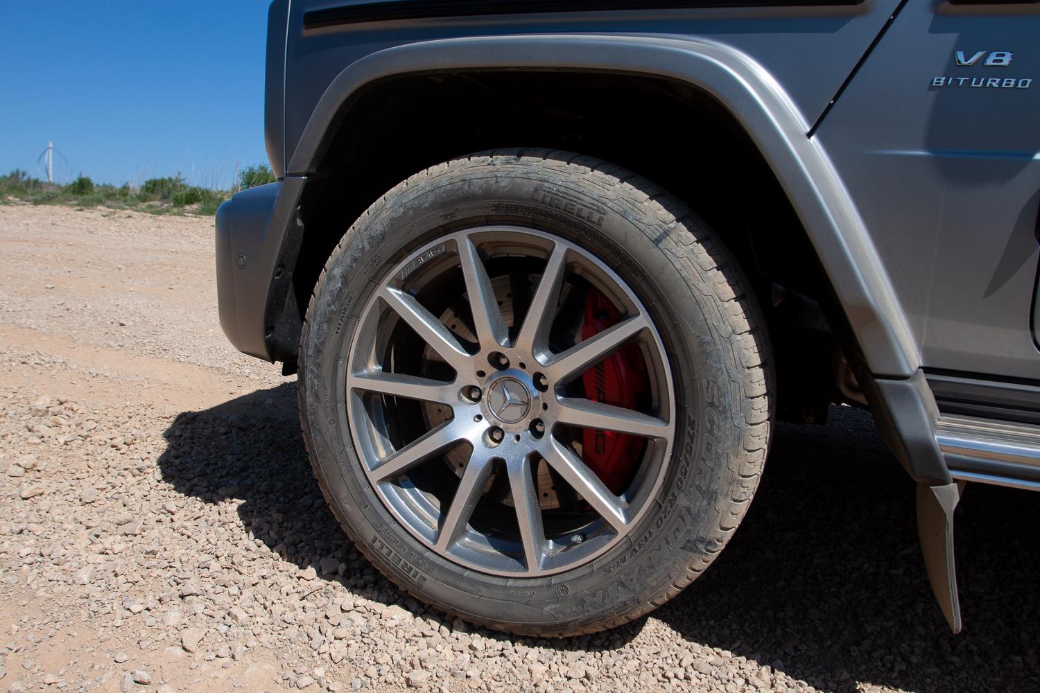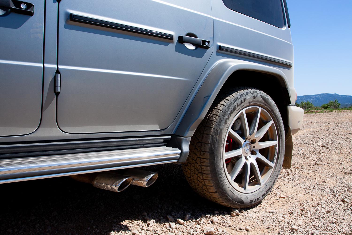 Konstrukcja G-Klasy nadal oparta jest na ramie. Dostępna jest pełna blokada dyferencjałów. Prześwit (G500) zwiększono do 24,1 cm. Głębokość brodzenia to obecnie aż 70 cm, a trawersy wymuszające przechył boczny samochodu o 35 stopni (o 7 stopni więcej niż poprzednio), są nadal bezpieczne. Kiedy przyjechaliśmy na poligon offroadowy, byliśmy pewni, że naprawdę wymagającą kamienistą trasę pokonamy odmianą G500, tymczasem zaproszono nas do AMG. Sportowa wersja w trudny teren?! Choć na początku byłem nieufny, to z każdą kolejną pokonaną (bardzo szybko) przeszkodą moje oczy otwierały się coraz szerzej. Ten kolos, ważący 2,5 tony, mający niemal 600 koni mechanicznych pod maską, poza asfaltem radził sobie niezwykle dziarsko. Choć oczywiście więcej przyjemność dostarcza na asfaltowych drogach, to jednak przejazdy na przełaj nie są dla niego żadnym problemem. Instruktorzy jazdy offroadowej oraz organizatorzy prezentacji za wszelką cenę chcieli udowodnić nam, że niezależnie, jaką wersję Mercedesa Klasy G wybierzemy, ona zawsze pozostanie terenowym samochodem z prawdziwego zdarzenia.