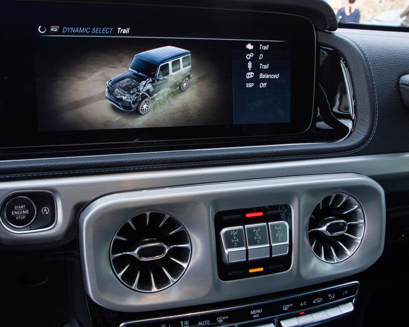 Kierownica przypomina tę z zaprezentowanej niedawno najmniejszej Klasy A. Również system multimedialny i zegary (dwa ekrany o przekątnej 12,3 cala) oraz wygląd deski rozdzielczej dostosowano do najnowszych trendów oraz osiągnięć marki Mercedes-Benz w tej materii. Wykonanie wnętrza jest na najwyższym poziomie i, widząc ten samochód z zewnątrz jako toporny wehikuł na każde warunki, wewnątrz możemy korzystać z luksusu rodem z prawdziwej limuzyny. Ten pojazd to prawdziwy monument, niezależnie od tego, ile masz wzrostu, przy Gelendzie poczujesz się malutki, a Twój wzrost pomoże Ci jedynie przy… zajmowaniu miejsca w kabinie.
