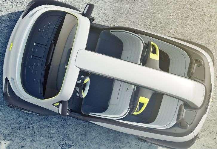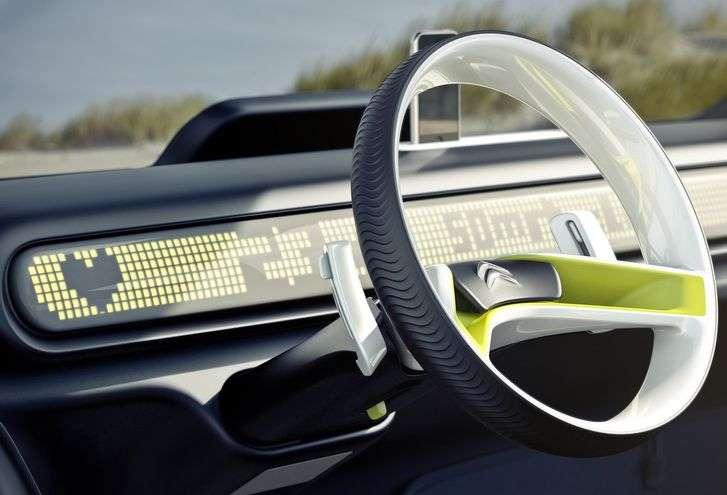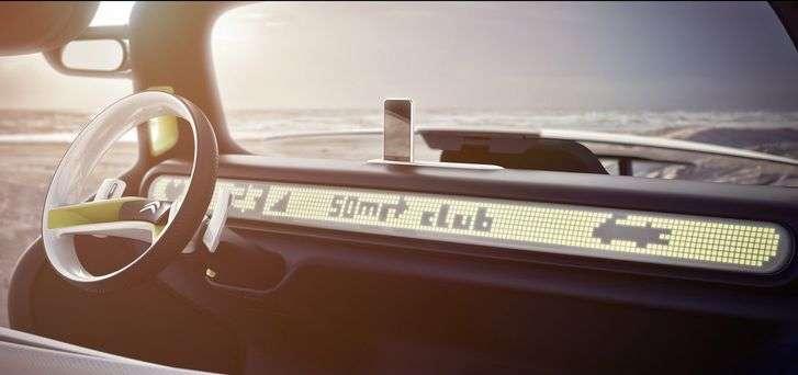 Ciekawym rozwiązaniem stylistycznym jest także tablica rozdzielcza w postaci ciągnącego się przez całą szerokość deski rozdzielczej wyświetlacza z wielkimi pikselami, mającymi kojarzyć się ze starymi grami video. Oprócz podstawowych informacji o prędkości czy włączonych kierunkowskazach wyświetla także wskazania nawigacji.
