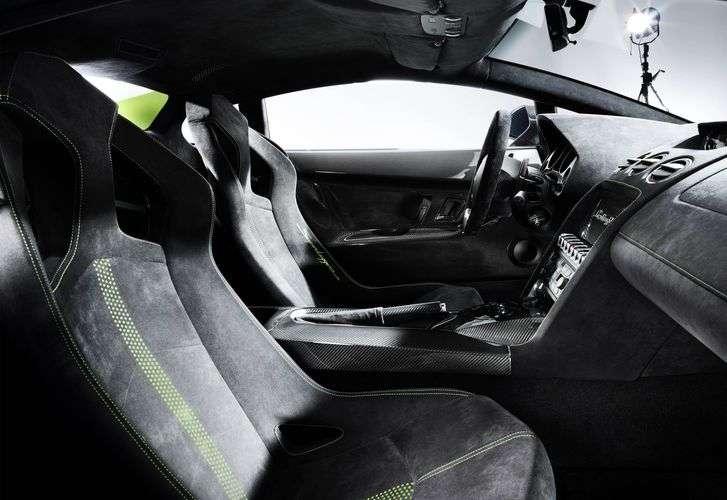 Gallardo z aluminiowym nadwoziem to lekki model, ważący zaledwie 1410 kg. Superleggera znaczy superlekka, więc konstruktorzy musieli na to miano popracować. Część elementów zastąpiono wykonanymi z włókien węglowych. Zrobiono z nich pokrywę silnika, tylny spojler, progi, dyfuzor, części podwozia czy zewnętrzne lusterka. Boczne okna i szyba z pokrywie bagażnika są nie ze szkła, ale z polikarbonu. W sumie samochód udało się odchudzić o 70 kg, czego 40 dało zastosowanie włókien węglowych.