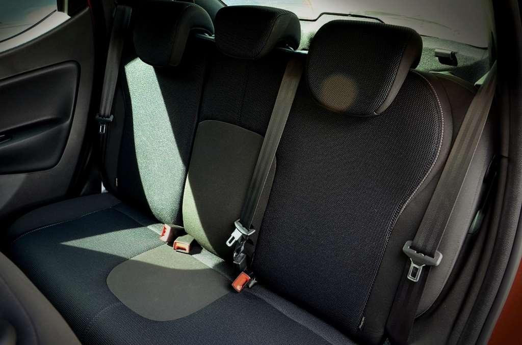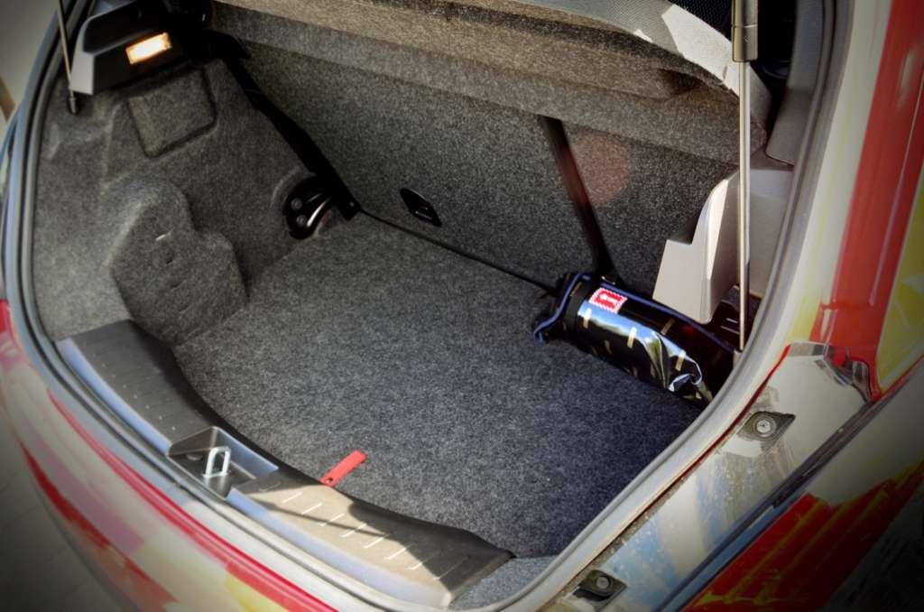Zupełnie inaczej wygląda sytuacja osób siedzących na przednich fotelach. Miejsca jest naprawdę sporo zarówno na nogi jak i nad głową, dlatego dwie osoby podróżujące w tym samochodzie nie będą miały na co narzekać. Niestety przednia część wnętrza auta również nie jest pozbawiona wad. Słaby zakres regulacji foteli w połączeniu z jednopłaszczyznową regulacją kierownicy sprawiły, że miałem spory problem ze znalezieniem odpowiedniej pozycji za kierownicą. Dodatkowo słabe trzymanie boczne foteli powoduje trening bicepsów przy każdym mocniejszym wejściu w zakręt.