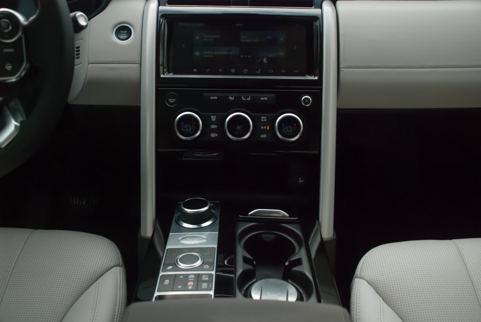 Piąta generacja Land Rovera Discovery to nie tylko luksus i właściwości terenowe, ale także praktyczność. We wnętrzu znajdziemy wiele przemyślanych miejsc do przechowywania, między innymi podwójny schowek przed siedzeniem pasażera, lodówkę w podłokietniku, dość duży schowek pod uchwytami na napoje oraz niedużą skrytkę, ukrytą pod panelem klimatyzacji.