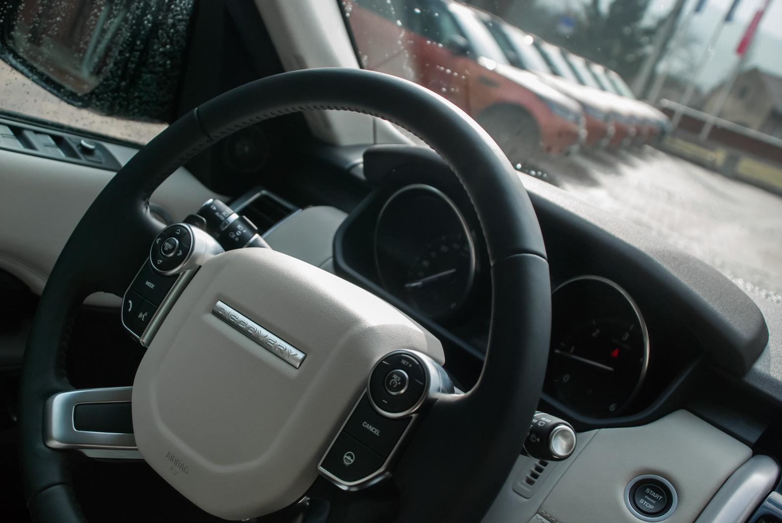 Zasiadając za kierownicą nowego Discovery, w pierwszej chwili trudno się odnaleźć. Koło kierownicy jest duże, masywne, wyposażone w całą masę przycisków, których przeznaczenie czasem trudno jest odgadnąć. Interfejs komputera pokładowego nie jest zbyt intuicyjny i trzeba poświęcić sporo uwagi, by odnaleźć interesujące nas funkcje. Trzeba jednak przyznać, że skórzane wnętrze. utrzymane w czarno-kremowej tonacji, prezentuje się naprawdę elegancko. Pozostaje tylko pytanie, czy będzie ono równie „glamour”, jeśli po terenowych wojażach wsiądziemy do niego w zabłoconych butach.