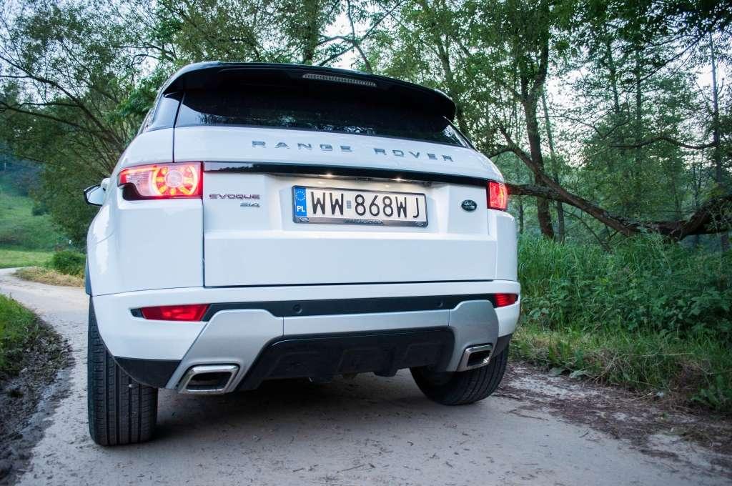 Patrząc na Range Rovera Evoque'a, nie można nie docenić pracy stylistów. Wykonali kawał dobrej roboty tworząc piękny pojazd, za którym oglądają się praktycznie wszyscy – młodzi, starzy, kobiety i mężczyźni. Ciężko właściwie o kąt, z którego ten samochód wyglądałby źle. Przód jest szeroki, masywny, a wąskie lampy czynią sylwetkę jeszcze bardziej agresywną. Od przednich świateł, przez bok, poprowadzono wpadające w tylne lampy przetłoczenie. Duże powierzchnie drzwi z małymi oknami przypominają bardziej samochody koncepcyjne, niż w pełni funkcjonalny model produkcyjny. Z tyłu znalazły się dwie rury wydechowe, do których spokojnie zmieściła by się pięść, a pomiędzy nimi widać zaś panel przypominający sportowy dyfuzor. Land Rover oferuje swoje najmniejsze dziecko w formie 3- i 5-drzwiowej, za tę pierwszą trzeba jednak dopłacić około 5-6 tysięcy złotych. Tegoroczna wersja, oznaczona jako MY14, nie zmieniła się zbytnio - ma dokładnie te same linie i jedyną nowością w wyglądzie zewnętrznym będą nowe kolory lakierów i modele felg. Evoque oznacza również spore możliwości personalizacji, dzięki którym dopasujemy samochód wedle własnego gustu. W testowym modelu na klapie bagażnika pojawiła się czerwona nazwa modelu, ale wybierając z darmowych opcji, moglibyśmy uczynić ją również czarną lub srebrną. Nadwozie w kolorze Fuji White zostało przełamane czarnym dachem z dużym, panoramicznym oknem.