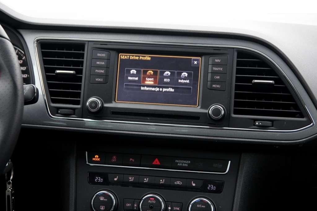 W wersjach Style oraz FR o efektywne przenoszenie momentu obrotowego dba XDS. To elektroniczna „szpera”, która na szybko pokonywanych zakrętach ogranicza buksowanie mniej przyczepnego koła i zwiększa siłę trafiającą na zewnętrzne koło. Wersja Style nie otrzymuje natomiast systemu Seat Drive Profile, którego tryby wpływają na charakterystykę silnika, siłę wspomagania układu kierowniczego oraz kolor oświetlenia wnętrza (białe lub czerwone w trybie sportowym). Seat Drive Profile znajdziemy także w Leonie 1.4 TSI z pakietem FR. Kompletną wersję systemu otrzymuje tylko wariant 1.8 TSI, w którym tryby jazdy wpływają też na brzmienie silnika.