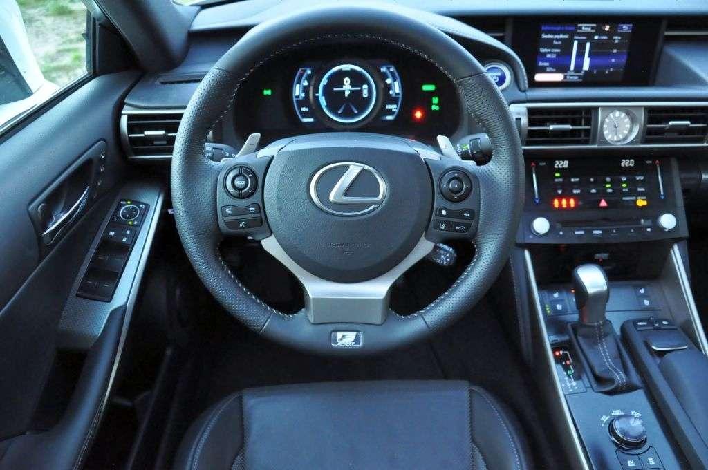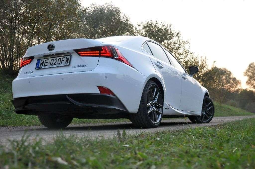 Na prostej auto nie rozczaruje, ale i nie imponuje. Wspomniana już prędkość maksymalna 200 km/h sama w sobie jest ligą aut dwukrotnie tańszych, podobnie ze sprintem do 100 km/h. Silnik spalinowy we współpracy z jednostką elektryczną nieźle radzi sobie z wagą (ze wszystkimi płynami i ze mną na pokładzie) ponad 1700 kilogramów, ale nie czuć w tym szczególnych sportowych emocji. Auto zadziwia jednak na krętych drogach. Dopiero w takich warunkach objawia się kunszt japońskich specjalistów od zawieszenia. Lexus IS prowadzi się rewelacyjnie, łącząc komfort z opieraniem się przechyłom na zakrętach. Świetnie trzyma łuk zakrętu, zaś korzystny rozkład masy sprawia, że praktycznie przez cały czas auto daje wrażenie neutralnego. Od czasu do czasu poczujemy podsterowność, a przy mocnym dodaniu gazu zarzucimy nieco tyłem (jak będziemy mieli szczęście, bo auto robi to z najwyższą niechęcią), ale żadna z tych sytuacji nie pojawia się nagle i brutalnie – mamy cały czas pełną kontrolę. Na suchej nawierzchni ciężko wyprowadzić Lexusa IS 300h z równowagi, ale na mokrym asfalcie trzeba uważać, bo opony mają pewne problemy z „klejeniem” się do wilgotnej nawierzchni. Nawiasem mówiąc, co robią opony o indeksie prędkości Y (czyli do 300 km/h) w aucie o prędkości maksymalnej 200 km/h?
