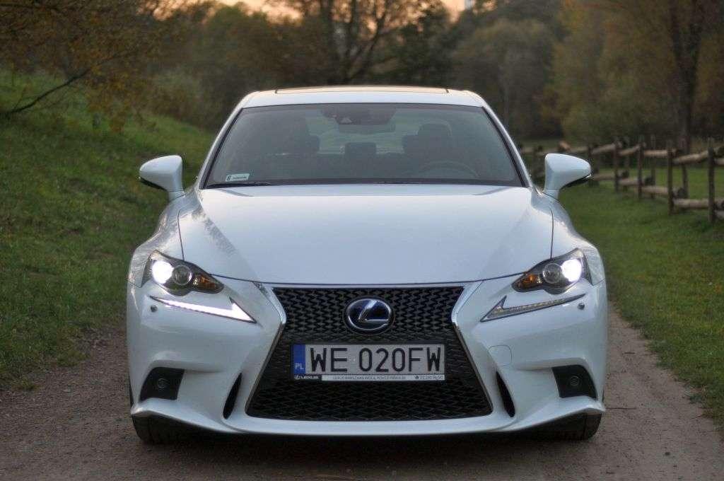 Nie pojechałem niestety na prezentację Zupełnie Nowego IS (tak Lexus nazywa ten model, jakby samo słowo Nowy IS miało nie wystarczyć), którą Lexus zrobił na torze Poznań, zapraszając samego Stiga z brytyjskiego TopGear. Nie pojechałem, ale zdjęciom prasowym przyjrzałem się uważnie. I zobaczyłem auto z japońskiej kreskówki, z dziwnie ucharakteryzowanymi LEDami pod przyciętymi reflektorami, czy tylnymi światłami zachodzącymi prawie na drzwi oraz tyłem optycznie cięższym od przodu. Brak pomysłu czy za dużo pomysłów? Nie muszę chyba mówić, że w aucie się nie zakochałem i w zasadzie odłożyłem go sobie do szuflady z BMW, czyli: „może za rok czy dwa się spodoba”. Aż parę miesięcy później biały, hybrydowy IS 300h w wersji F-Sport zajechał pod redakcję. Zaniemówiłem. Auto prezentowało się oszałamiająco. A do tego wyglądało w zasadzie dokładnie tak, jak na zdjęciach, więc musiałem je chyba wcześniej oglądać w alkogoglach.
