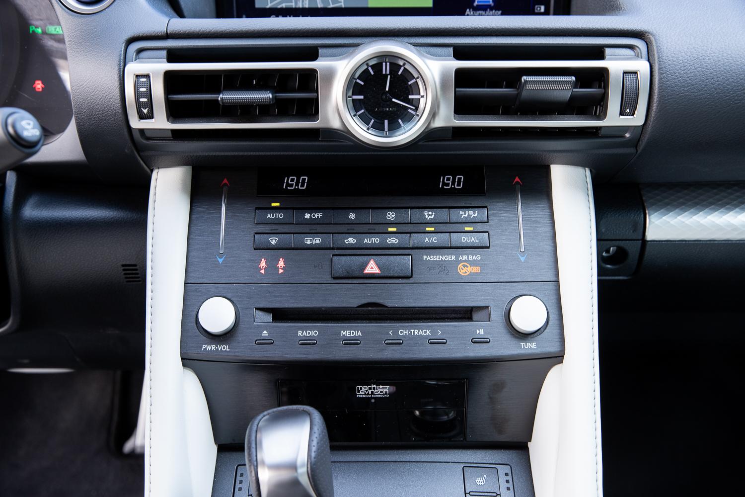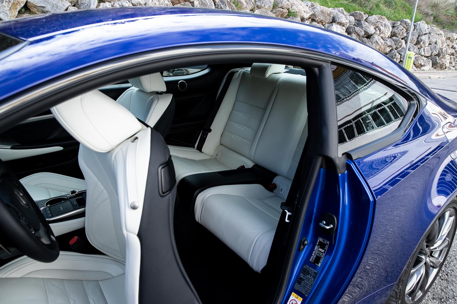 Wewnątrz Lexusa RC bez rewolucji – zmieniono tarczę zegarka w konsoli centralnej, wygląd przycisku zapłonu silnika, kształt nawiewów wentylacyjnych oraz system multimedialny na ten znany chociażby z modelu LS czy NX. Brak rewolucji, która chyba w przypadku tego modelu (stylistycznie), nie była potrzebna.