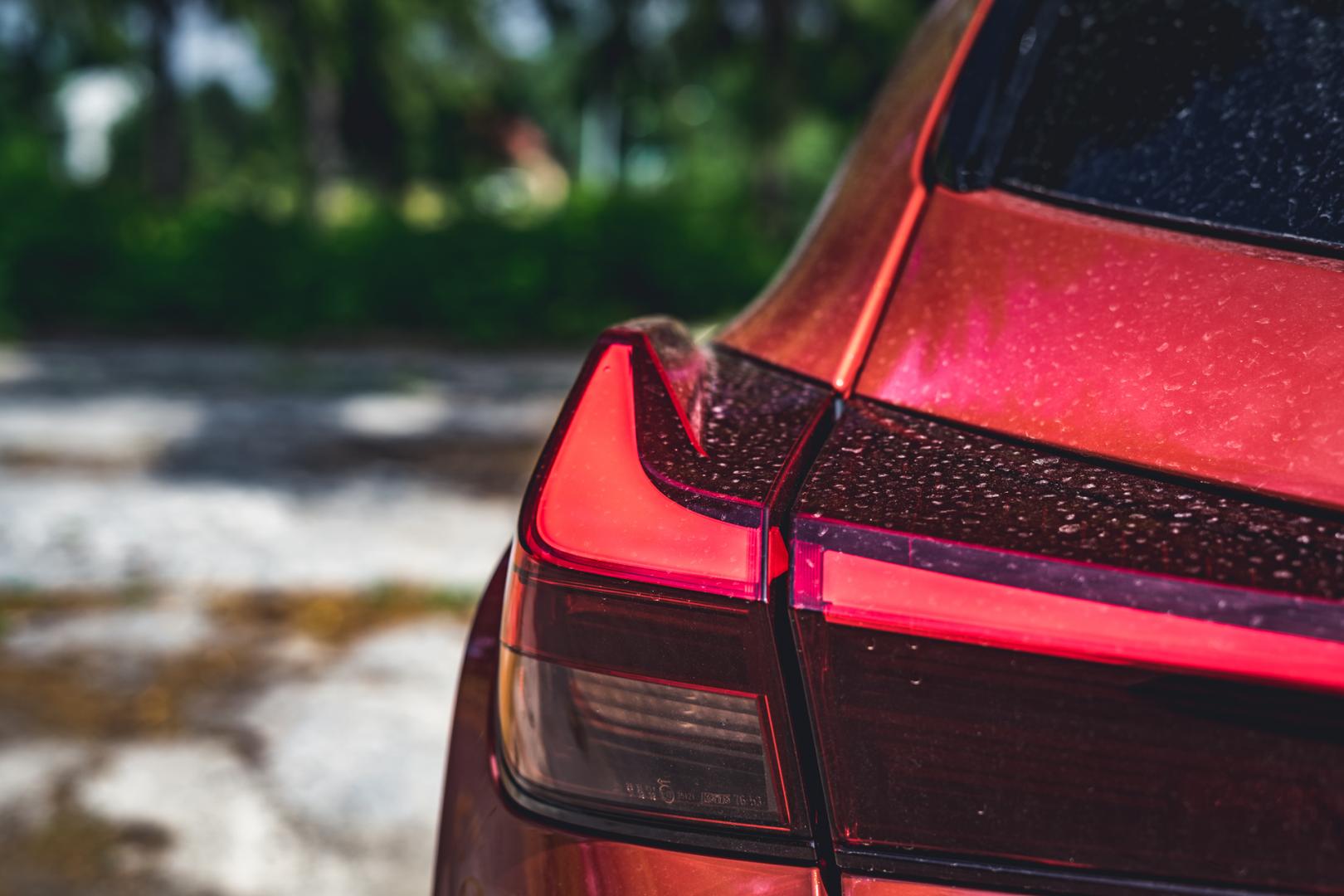 Patrząc z tyłu, zobaczymy, że to chyba jedyny Lexus z połączonymi tylnymi lampami. Ten element tworzy 120 diod LED, a w najwęższym punkcie ta linia ma zaledwie 3 milimetry. Na oko wygląda na grubszą, chyba, że chodzi o samą szerokość wiązki światła.