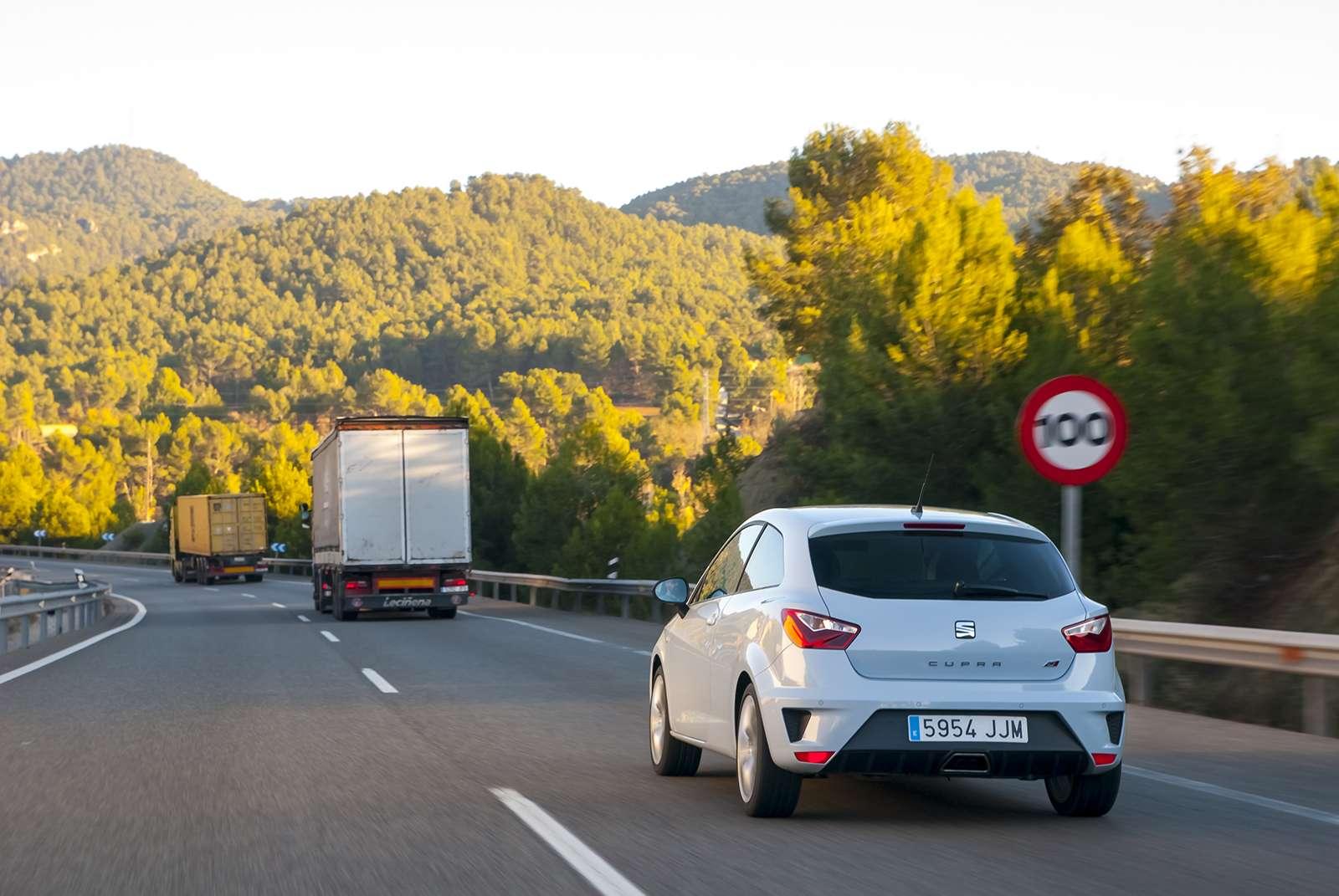 Trudno wyobrazić sobie lepsze miejsce do przetestowania możliwości nowej Cupry niż właśnie Hiszpania. Rodzimy kraj Seata to nie tylko wspaniała kuchnia i sympatyczni ludzie, ale również tysiące kilometrów pięknych i malowniczych dróg. Od autostrad łagodnie wijących się pośród wzniesień, aż po ekstremalnie wąskie i kręte górskie drogi. Taka właśnie trasa pod Barceloną została zamknięta i zabezpieczona na potrzeby „wyciśnięcia” z nowej Ibizy Cupry wszystkiego, co się da. Ta gonitwa przypominała nieco grę na konsoli. Ścinanie zakrętów, ostre redukcje i absolutnie nieekonomiczny styl jazdy, to coś, co wielu kierowców lubi najbardziej. I mimo, że Cupra bardziej kojarzy się z przebojowym mieszczuchem, niż pogromcą bezdroży, ona również spisała się świetnie.