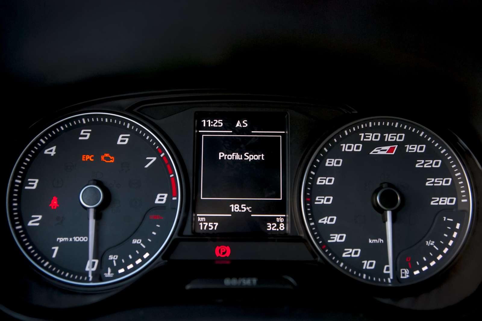 Kolejną niezwykle trafioną nowością, są tryby jazdy. Do tej pory można było o tym aucie powiedzieć „jaka Cupra jest, każdy widzi”. Teraz możemy nieco zmieniać jej charakter za pomocą przycisku. Nie jest to tak rozbudowany system, jak na przykład w Leonie Cupra, gdzie do wyboru dostajemy aż pięć wariantów. Tu mamy możliwość przełączania się tylko z trybu normalnego w sportowy. Zmiana ta nie dotyczy silnika, a jedynie ustawień zawieszenia i układu kierowniczego. Po przełączeniu w tryb sport auto faktycznie staje się nieco sztywniejsze, jednak różnica w reakcji kierownicy jest prawie niezauważalna. Pasjonaci motoryzacji z pewnością pokochają Ibizę Cuprę za… szczerość. W porządku – odgłos, który dociera do naszych uszu w czasie jazdy nie przypomina dzikiej rajdówki, ale ma tę zaletę, że pochodzi prosto z silnika i układu wydechowego, a nie jest sztucznym dźwiękiem z głośników.