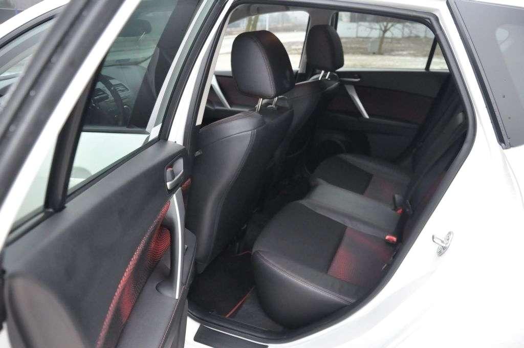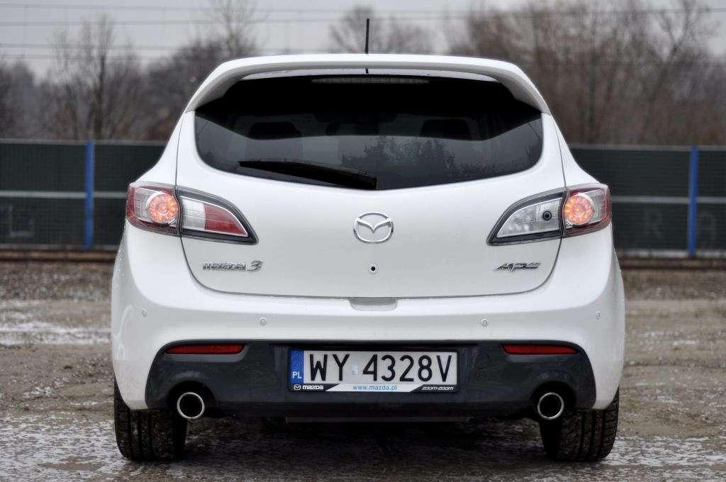 I o to chodzi w sportowym aucie! Mazda 3 MPS musi jednak służyć też na co dzień, spójrzmy więc na nią od strony praktycznej. Systemy ABS, EBD, EBA, DSC, RVM, TCS wkurzają czasem swoimi diodami, ale zasadniczo dbają o bezpieczeństwo. Kufer o pojemności 340 litrów wystarcza na miasto, ale zadeklarowane w dowodzie 5 miejsc, to lekka przesada – na tylnej kanapie nie ma zbyt wiele miejsca. A kiedy kierowca i jego pasażer po prawej rozsiądą się wygodnie, to tylna kanapa przyda się tylko niezbyt wyrośniętym dzieciom. Akurat w ten sposób testowałem to auto w następnych dniach i muszę powiedzieć, że niczego mi nie brakowało. Z tym, że dzieci rosną, a Mazda nie.