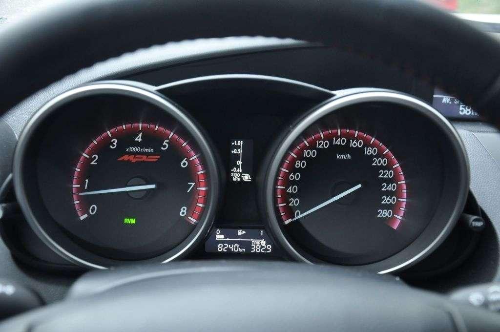 Oczywiście nie można narzekać na wyposażenie MPS: podwójna klimatyzacja, podgrzewane fotele, tempomat, monitorowanie martwego pola lusterek, elektryczne szyby i lusterka, system audio BOSE z subwooferem w miejscu koła zapasowego, który wprawia w drgawki wewnętrzne lusterko – to wszystko sprawia, że kierowca czuje się dopieszczony. Problem tylko w tym, że tak może się dopieścić właściciel każdej innej Mazdy. A ja mam MPS i przypomina mi o tym tylko jeden napis przy obrotomierzu… czuję niedosyt.