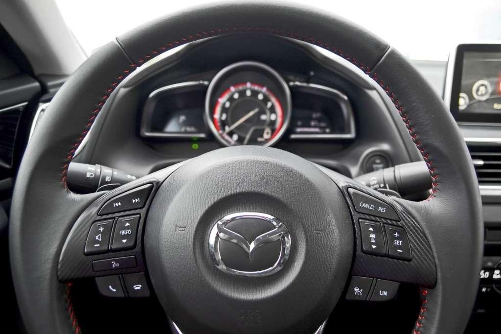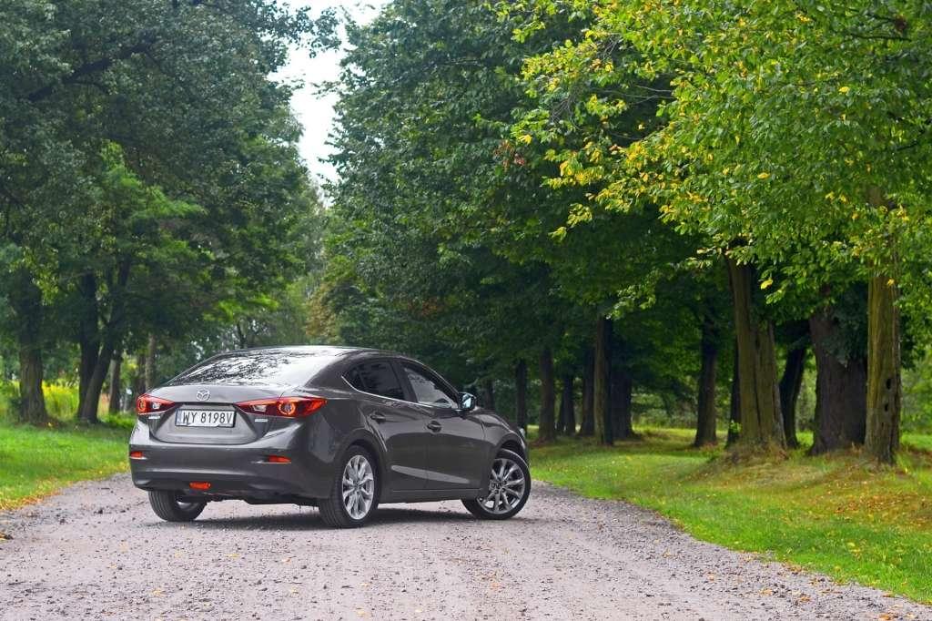Prowadzenie Mazdy 3 może sprawiać przyjemność. Auto jest bardzo fajnie wyważone, a świetnie leżąca w dłoniach kierownica z dobrze dobraną siłą wspomagania potrafi dokładnie przekazać informacje z przednich kół. To nie jest typowy komfortowy i bezpłciowy sedan klasy C służący do przemieszczania się z punktu A do punktu B. ”Trójka” potrafi sprawić, aby kierowca poczuł, że to on jest panem sytuacji, a auto dokładnie będzie wykonywało jego polecenia. Niektóre osoby mogą narzekać na zbyt twardo zestrojone zawieszenie, które w połączeniu z 18-calowymi felgami dość często informuje kierowcę i pasażerów o stanie polskich dróg. Jednak czy należy uznać to za wadę? Na to pytanie każdy musi odpowiedzieć sobie sam w zależności od preferencji i oczekiwań od swojego wymarzonego auta.