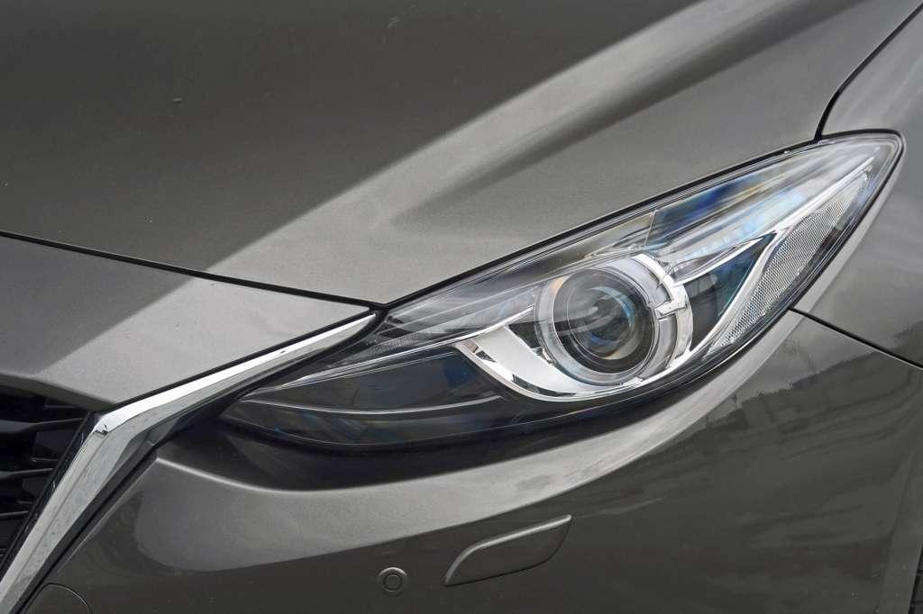 Wracając do głównej bohaterki tego testu. Najnowsze wcielenie Mazdy 3 Sedan nie chce być kolejnym nudnym i klasycznym sedanem. Ta niechęć do nudy i konserwatyzmu widoczna jest już na pierwszy rzut oka. Absolutnie z każdej strony samochód prezentuje się dynamicznie, zgrabnie i co jest dość rzadkim zjawiskiem w przypadku sedanów tej klasy, wygląda również bardzo lekko. Styliści Mazdy wykonali kawał naprawdę dobrej roboty, a charakterystyczne linie nadwozia pełne przetłoczeń oraz krągła ”twarz” z przymrużonymi ”oczami” są cechami wspólnymi dla innych modeli tego japońskiego producenta samochodów.
