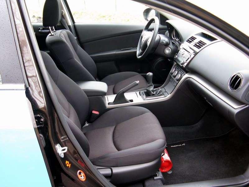 Oszczędne kombi zwykle będzie zasuwało na trasach, dlatego przydałby się odpowiedni nastrój w jego wnętrzu. Jest proste, ale ładne. Nie licząc tworzywa wokół dźwigni zmiany biegów, które przypomina zmielony ryż wyschnięty na słońcu, materiały są miłe w dotyku, dobre i świetnie spasowane. Nawet konsola wykończona czarnym plastikiem polerowanym na wysoki połysk teoretycznie jest tanim chwytem – ale spójrzcie na nią. Ile ma szyku! Co ciekawe – „Szóstka" to jedno z nielicznych aut, w których podłokietnik na drzwiach pełni funkcję podłokietnika – opierając się o niego można trzymać kierownicę w miejscu, które pozwoli na ominięcie sarny, czy pijanego idioty na drodze. Za to prawy podłokietnik, ten na tunelu – nie, bo jest trochę za niski i nie da się go podnieść. Jest dobry dla tych, którzy trzymają dłoń na dźwigni zmiany biegów podczas jazdy i lubią się „lansować". Kryje za to w swoim wnętrzu spory schowek.