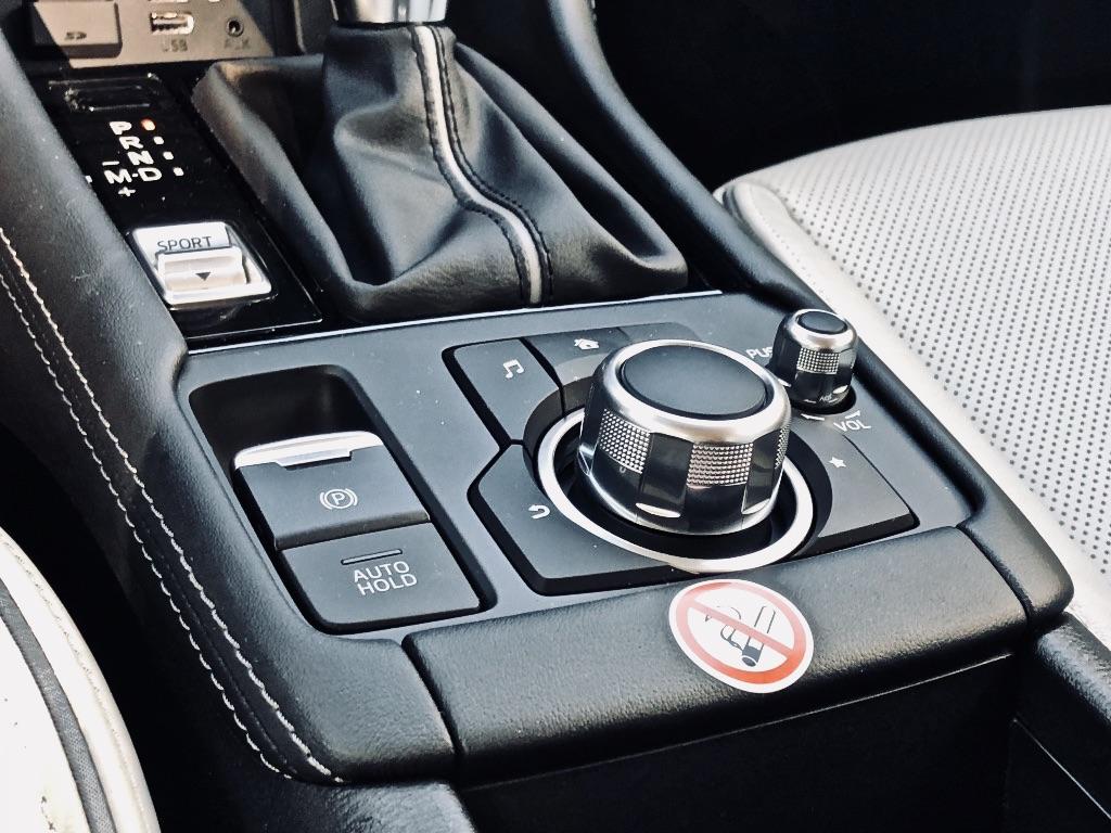 Na pierwszy rzut oka wnętrze również niewiele się zmieniło, ale cóż to – mała rewolucja, zniknął hamulec ręczny! Tak, Mazda postanowiła zrezygnować z mechanicznej wajchy na koszt przycisku. Przy okazji tunel centralny został nieco przestylizowany i teraz wygodniej jest sterować pokrętłem od systemu multimedialnego. Drugą rewolucją jest tylny podłokietnik z uchwytami na kubki – takiego udogodnienia wcześniej nie było. W materiałach prasowych często przemyca się słowo „Premium”, więc może kiedyś przyjdzie też czas np. na indukcyjną ładowarkę do smartfonów.