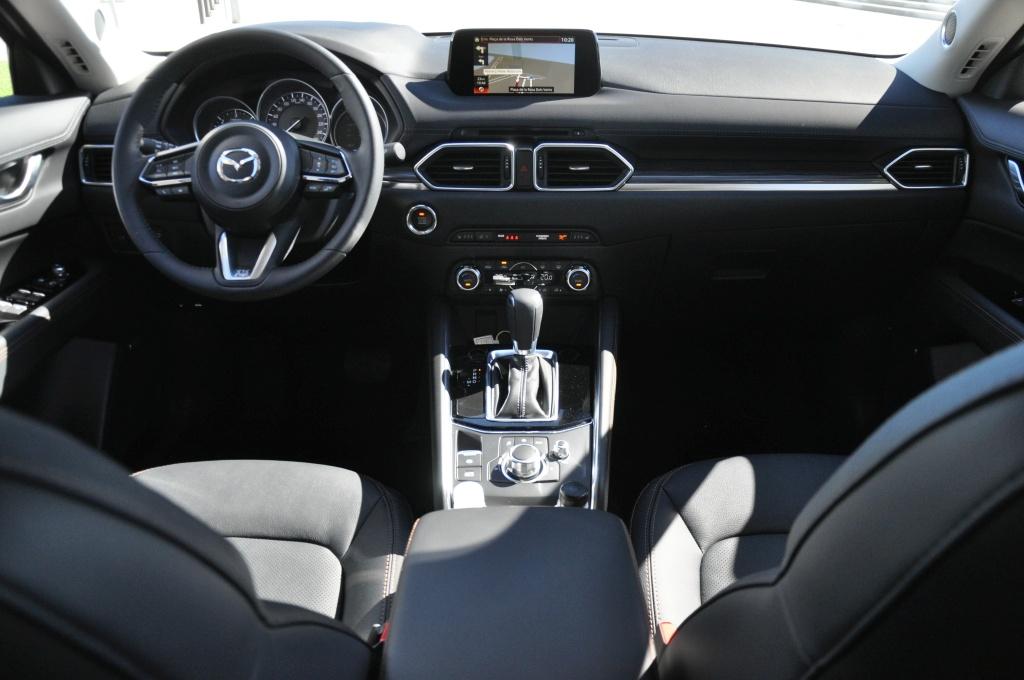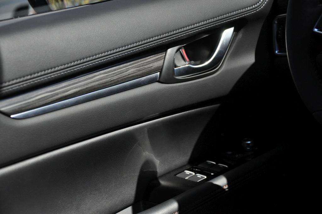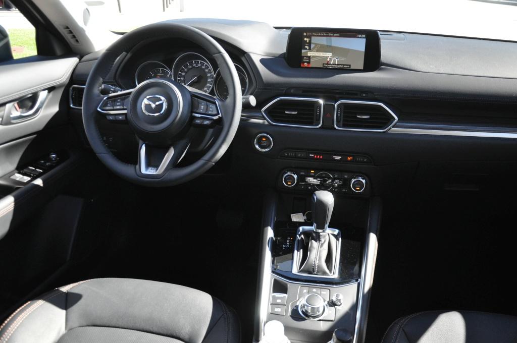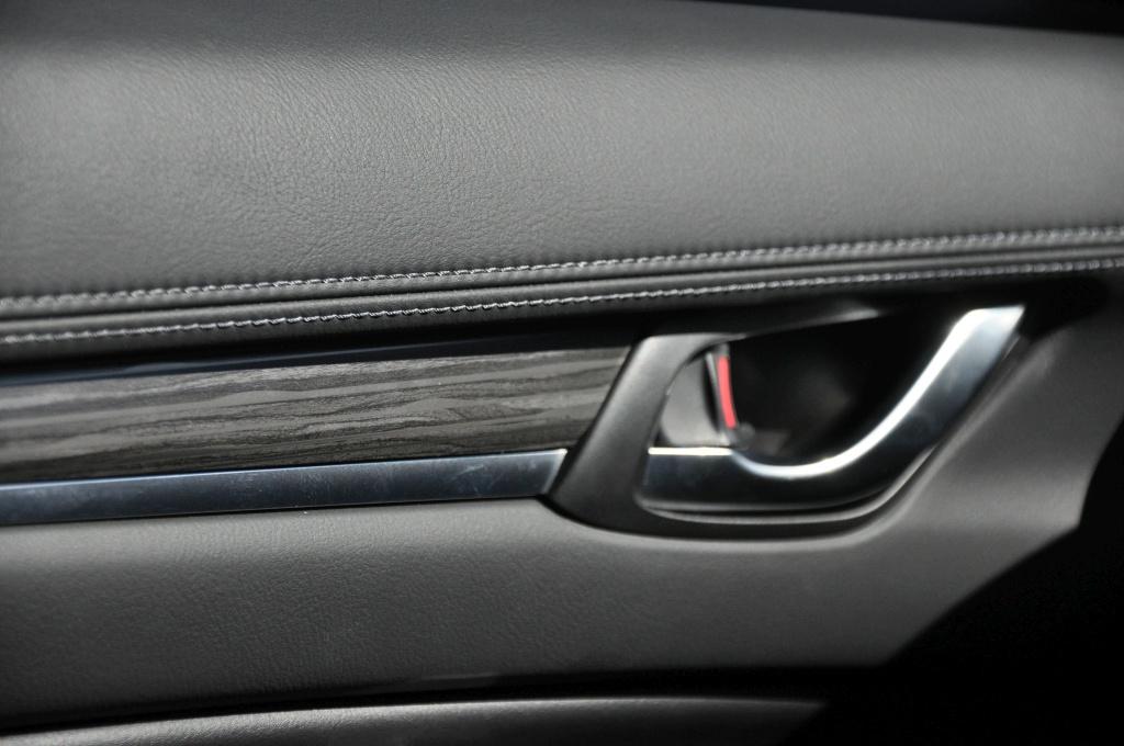 Za to siadając we wnętrzu, widać tę samą metamorfozę, co na zewnątrz. Deska rozdzielcza została zaprojektowana od podstaw, łącząc w jakiś niewytłumaczalny sposób klasyczną elegancję ze stylem i nowoczesnością. Jednak tym, co robi największe wrażenie, jest jakość. Wszystkie materiały, z jakimi stykamy się w aucie, są pierwszorzędnej jakości. Tworzywa są miękkie tam, gdzie powinny i nie za twarde w dolnych partiach, do których czasem sięgamy, jak kieszenie w drzwiach. Do wykończenia deski rozdzielczej użyto przeszyć, ale nie udawanych, czyli wytłaczanych (jak u niektórych konkurentów), a prawdziwych. Skórzana tapicerka jest przyjemnie miękka, co też jest godne dostrzeżenia. Jakość montażu nie budzi zastrzeżeń i może być uznana za jedną z lepszych w tej klasie. Ogólne wrażenie jest takie, jakby Mazda miała ochotę być marką trochę bardziej premium, niż jest obecnie. Ale nie wszystko złoto, co się świeci. Atrakcyjnie wyglądające listwy ozdobne nie są w żadnym razie drewniane. Naturalny materiał udaje okleina, choć znów doskonale wykonana.
